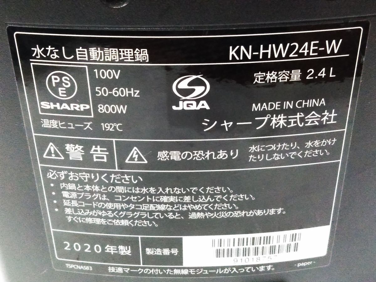 □動作品 シャープ SHARP 水なし自動調理鍋 HEALSIO ヘルシオ ホットクック 無線LAN対応 2.4L KN-HW24E-W 2020年製 1021-12 @140□