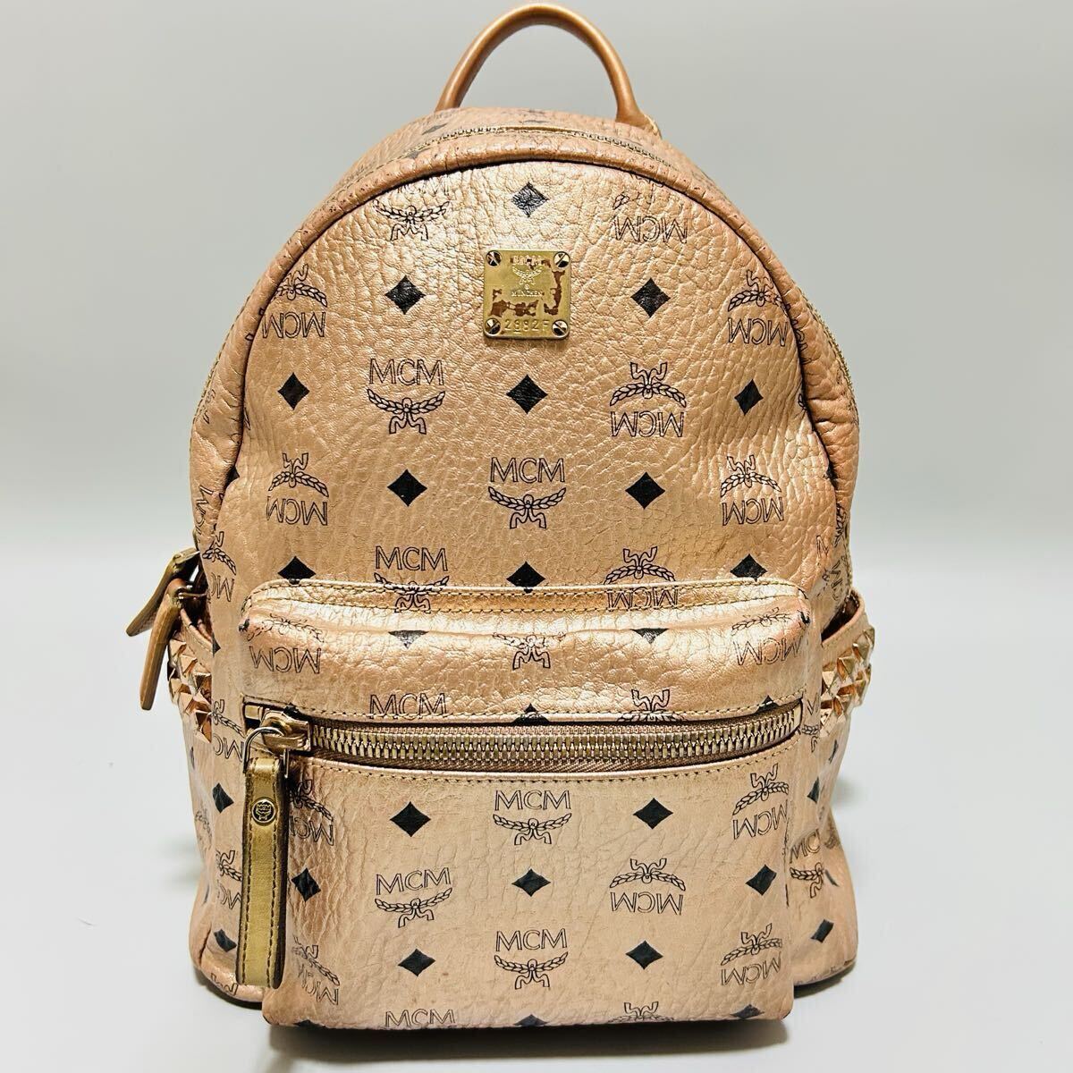 1円 美品 MCM エムシーエム ヴィセトス スタッズ リュックサック リュック バックパックピンクレディース正規品本物