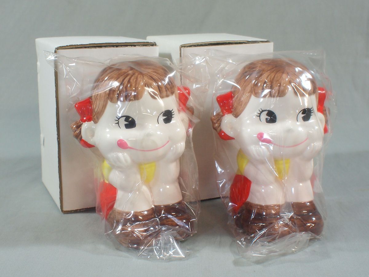 ■当時物 未使用 不二家 ペコちゃん バンク 陶器製 貯金箱 おすわりペコちゃん セット 非売品 レトロ ヴィンテージ■