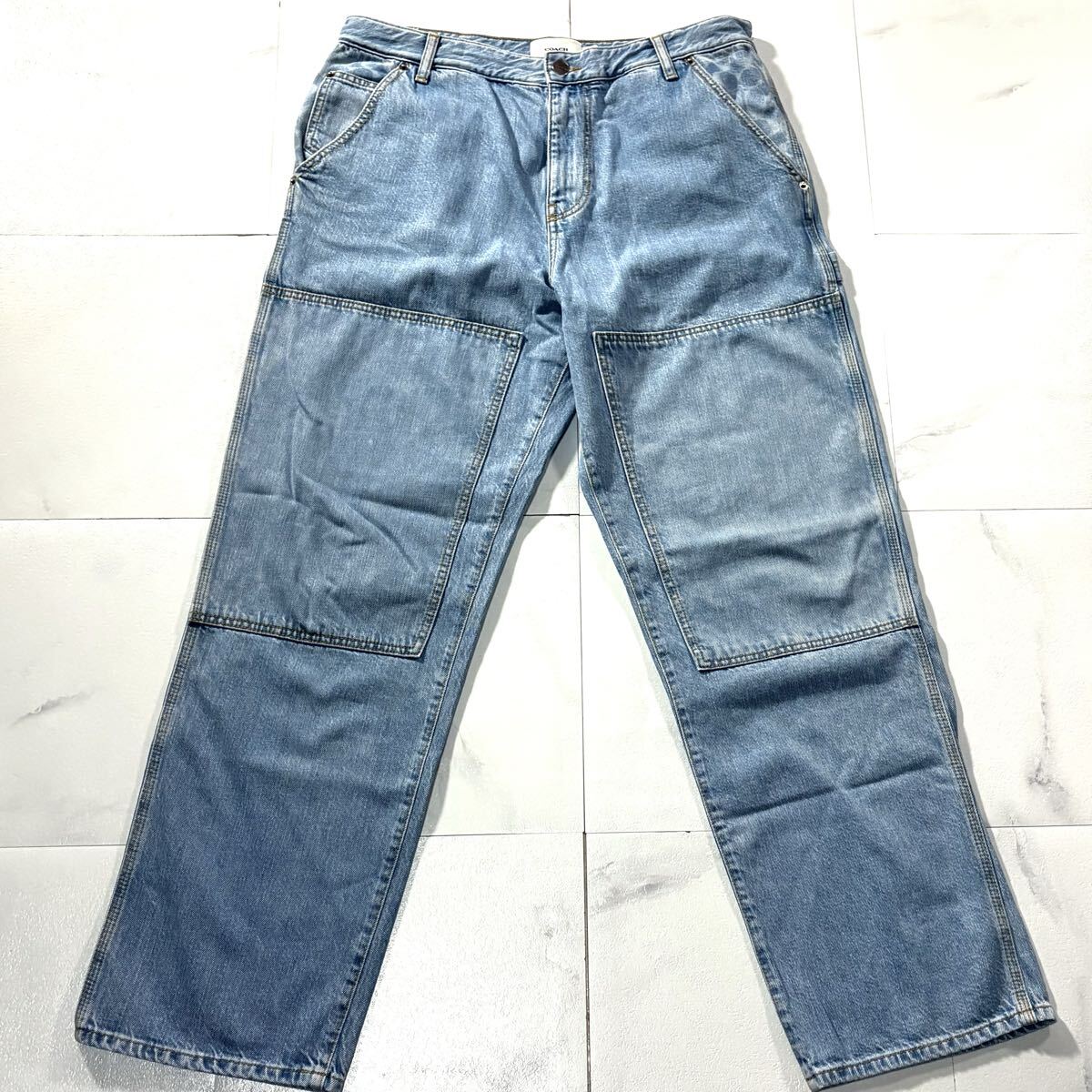 Product name: 極美品/XLサイズ●近年モデル COACH コーチ デニム ジーンズ ジーパン パンツ インディゴ メンズ シグネチャー柄 CC柄 レザーロゴパッチ 34