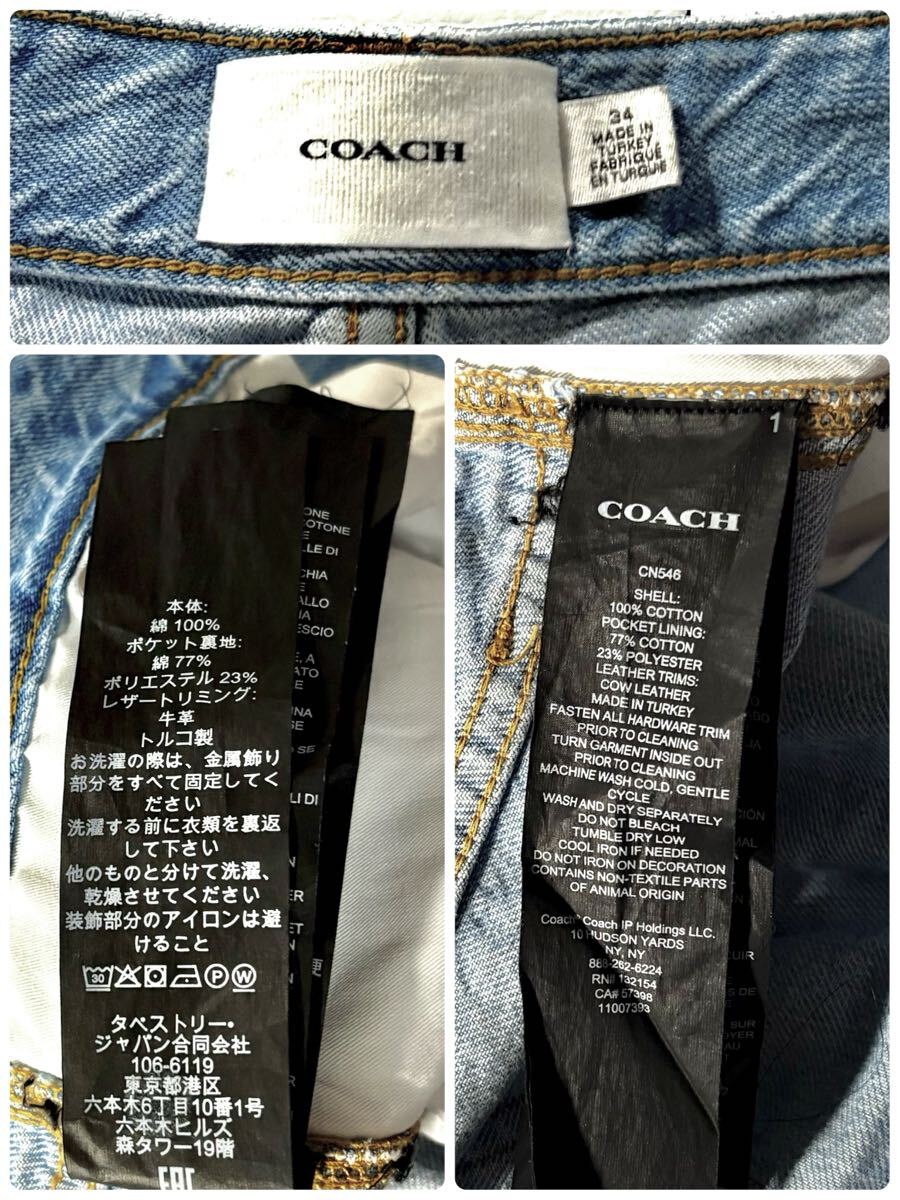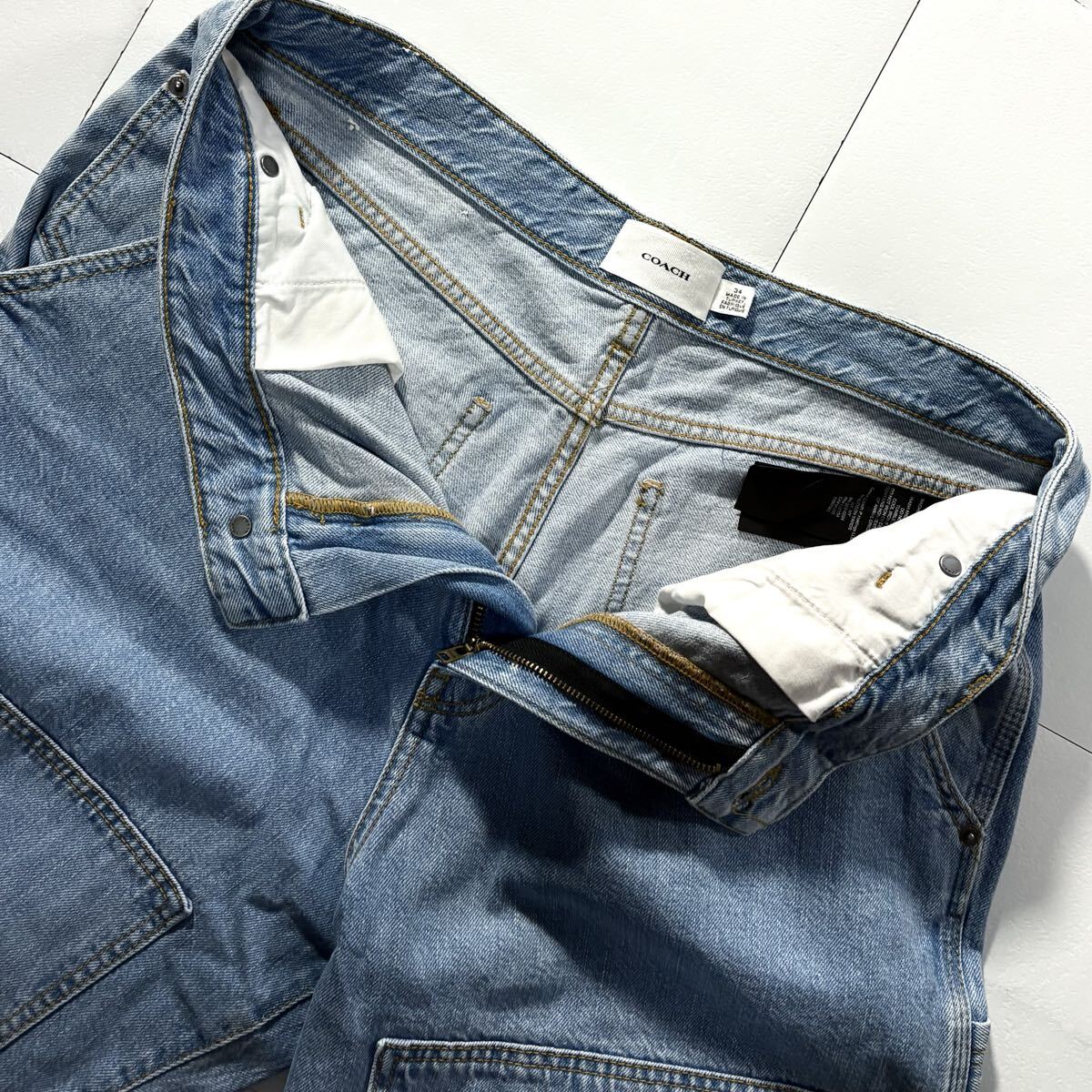 極美品/XLサイズ●近年モデル COACH コーチ デニム ジーンズ ジーパン パンツ インディゴ メンズ シグネチャー柄 CC柄 レザーロゴパッチ 34