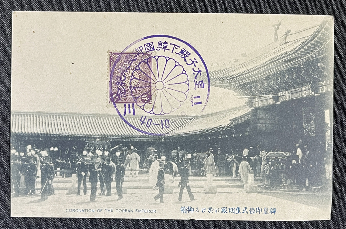 ◆戦前絵葉書32◆朝鮮 韓皇即位式重明殿に於ける御轎 明治40年 仁川特印 韓国/祭礼/朝鮮風俗 古写真