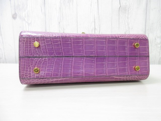 Product name: 極美品 艶 クロコダイル エイ革 ウッド ハンドバッグ バッグ 紫×クリーム 91103
