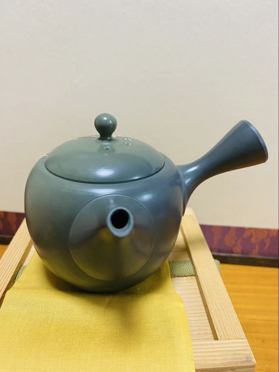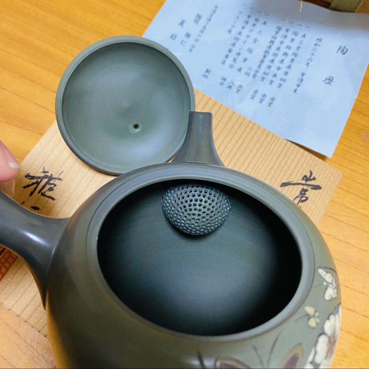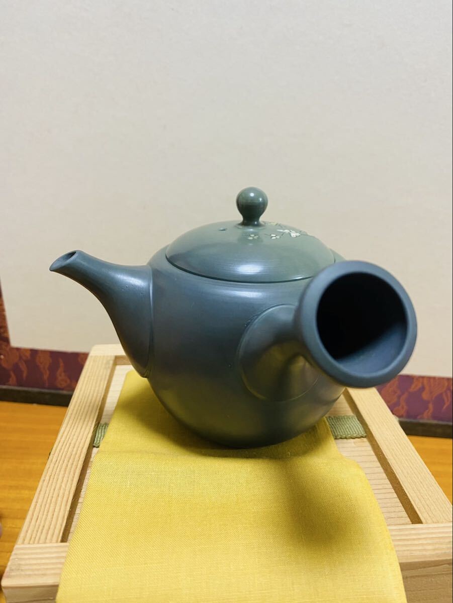 Product name: 常滑焼 夏目雅仁 急須 花蝶彫 茶注 煎茶器 緑泥 茶道具 木箱 共箱 銘品 桜 常滑名工