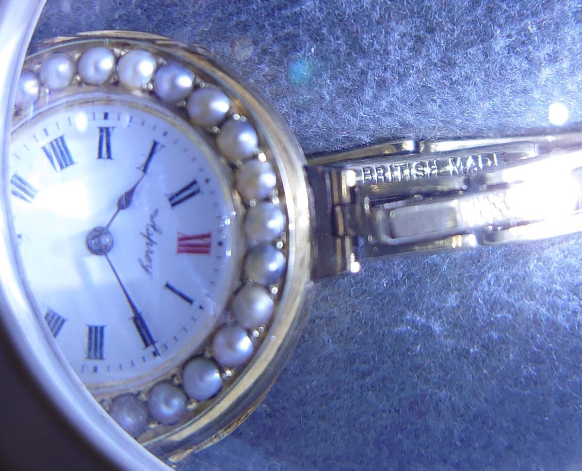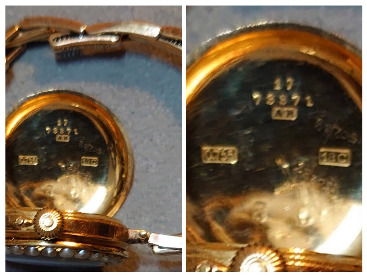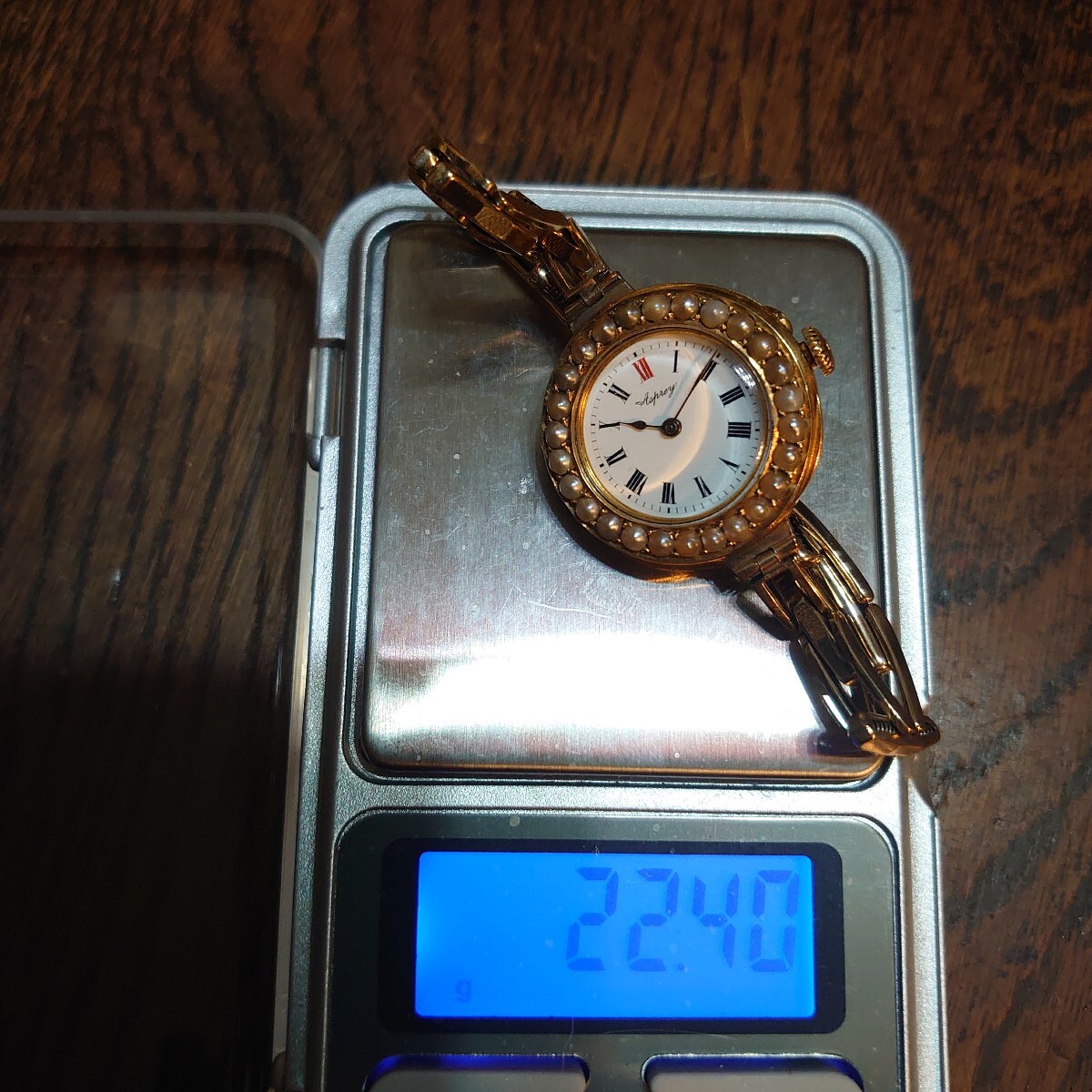 【金腕時計イギリス アスプレイ・アンティークレディース腕時計/シードパール入】『Asprey 本体側18金 バンド9金』総重量22.4g ダボ押し式
