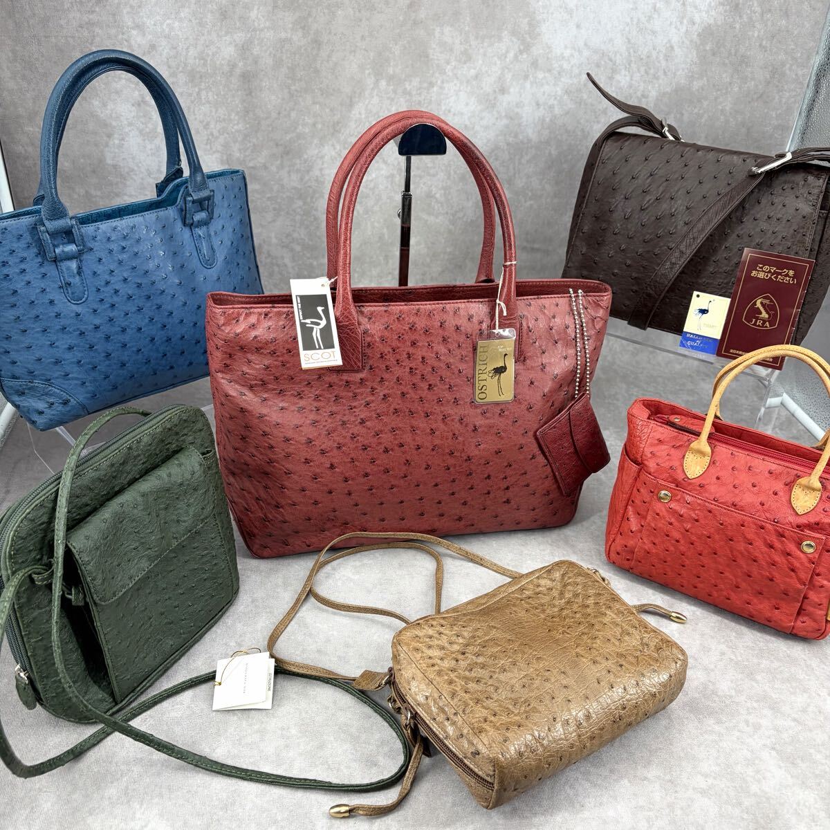 Product name: 1円 まとめ オーストリッチ③ バッグ 【大量 6点 セット】JRAあり 大きめ トート ハンド ダチョウ 本革 レザー フルポイント カラー