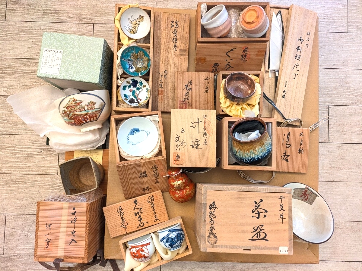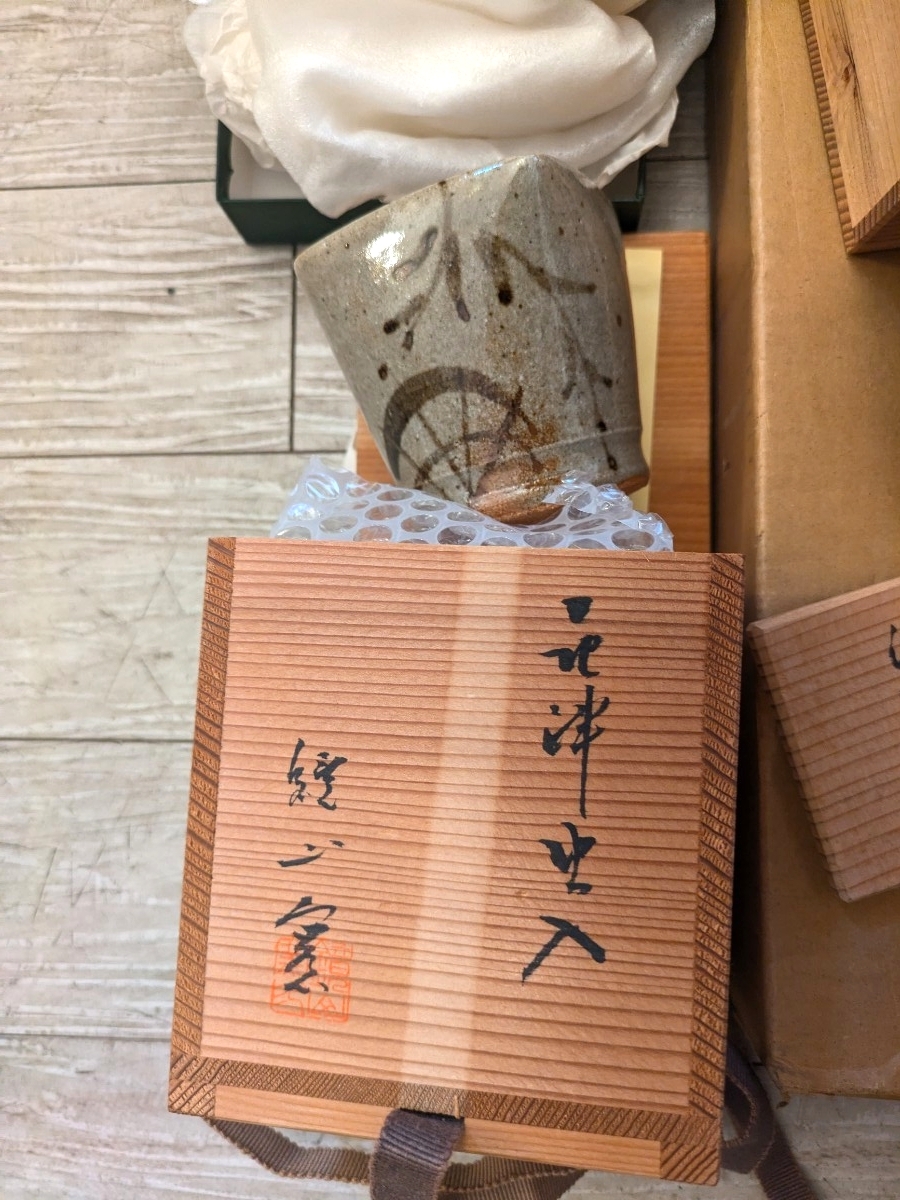 ■n【九谷焼 萩焼 ぐい呑 湯呑み 茶碗】唐津焼 清水焼 汁注 木はこ 木箱入 木箱 茶道具