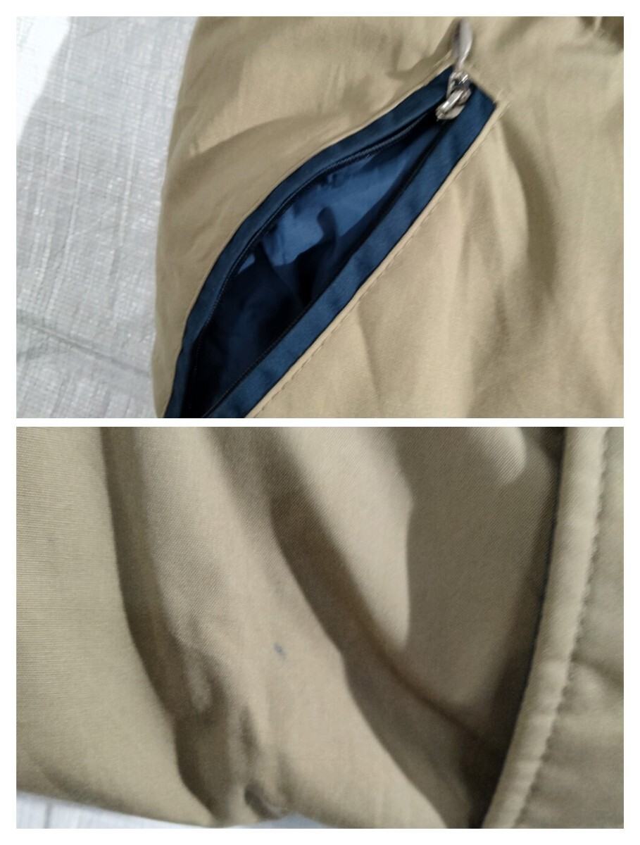 スナップボタン 斜め仕切りステッチ。左右ジップポケット。