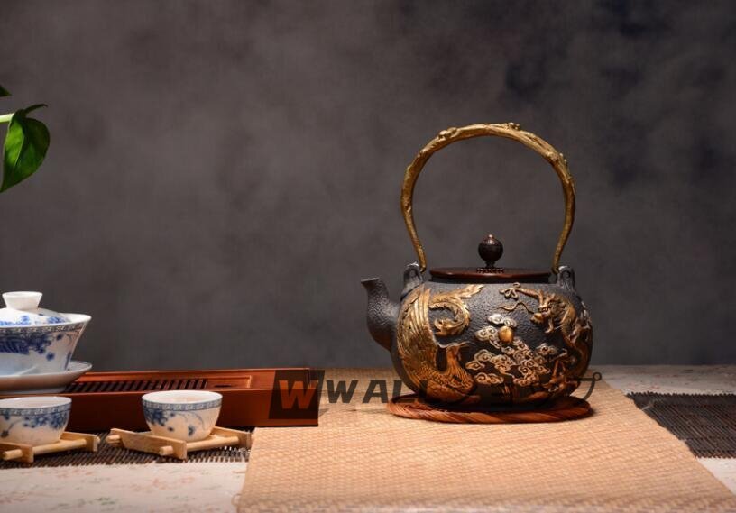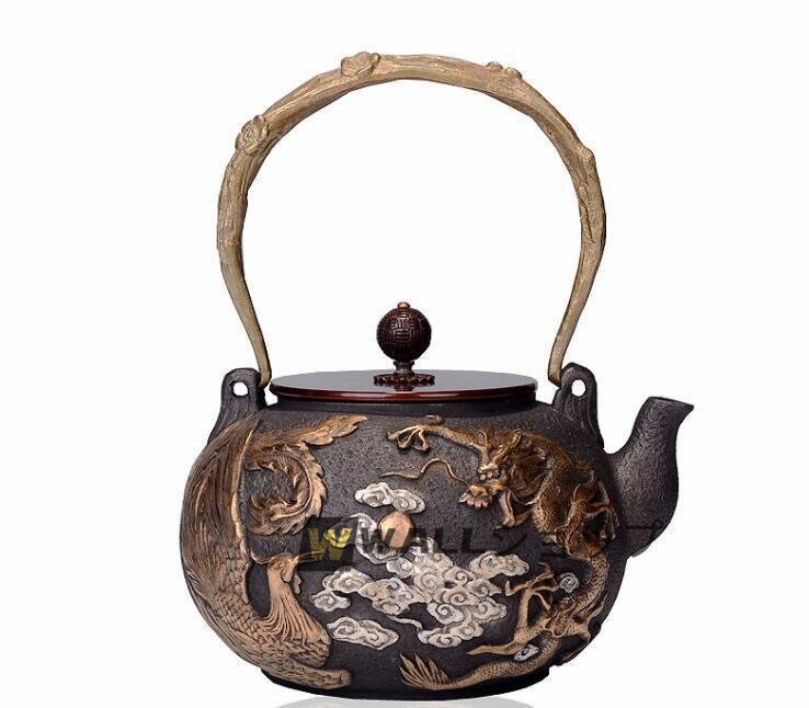 Product name: 極上の★竜と鳳凰 鋳鉄製鉄瓶 手作り コーティングなし 老鉄瓶 やかんを沸かす 提梁鉄瓶 お茶の道具 1.2L