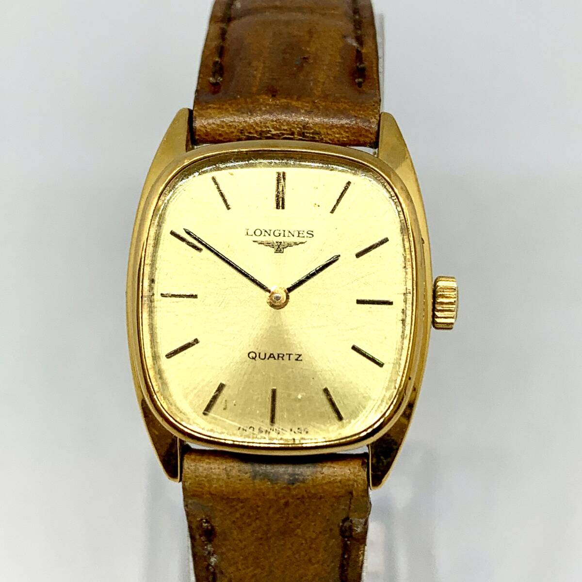 Product name: C1016〇 1円~! LONGINES ロンジン スクエア GP×革 クォーツ QZ ゴールド文字盤 レディース 腕時計 ヴィンテージ 稼動 動作確認済