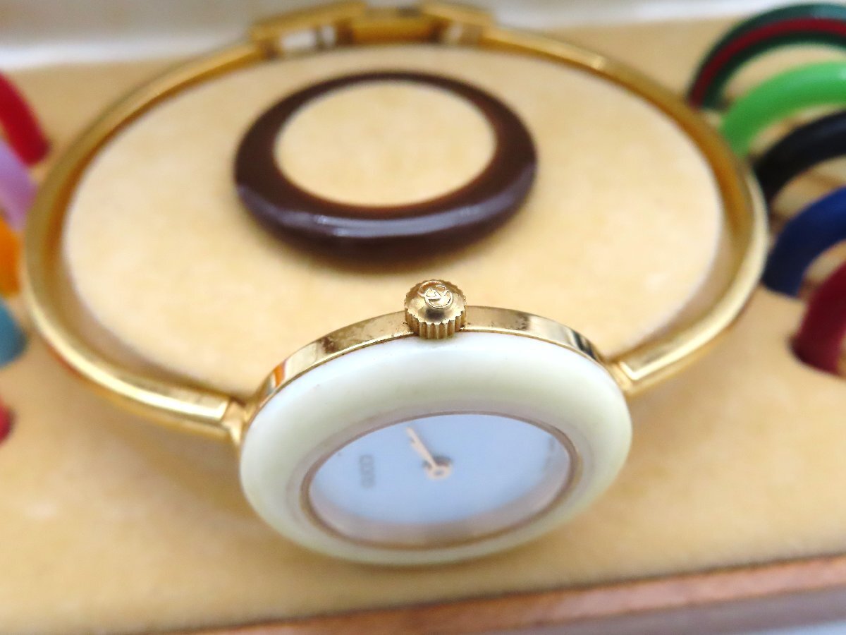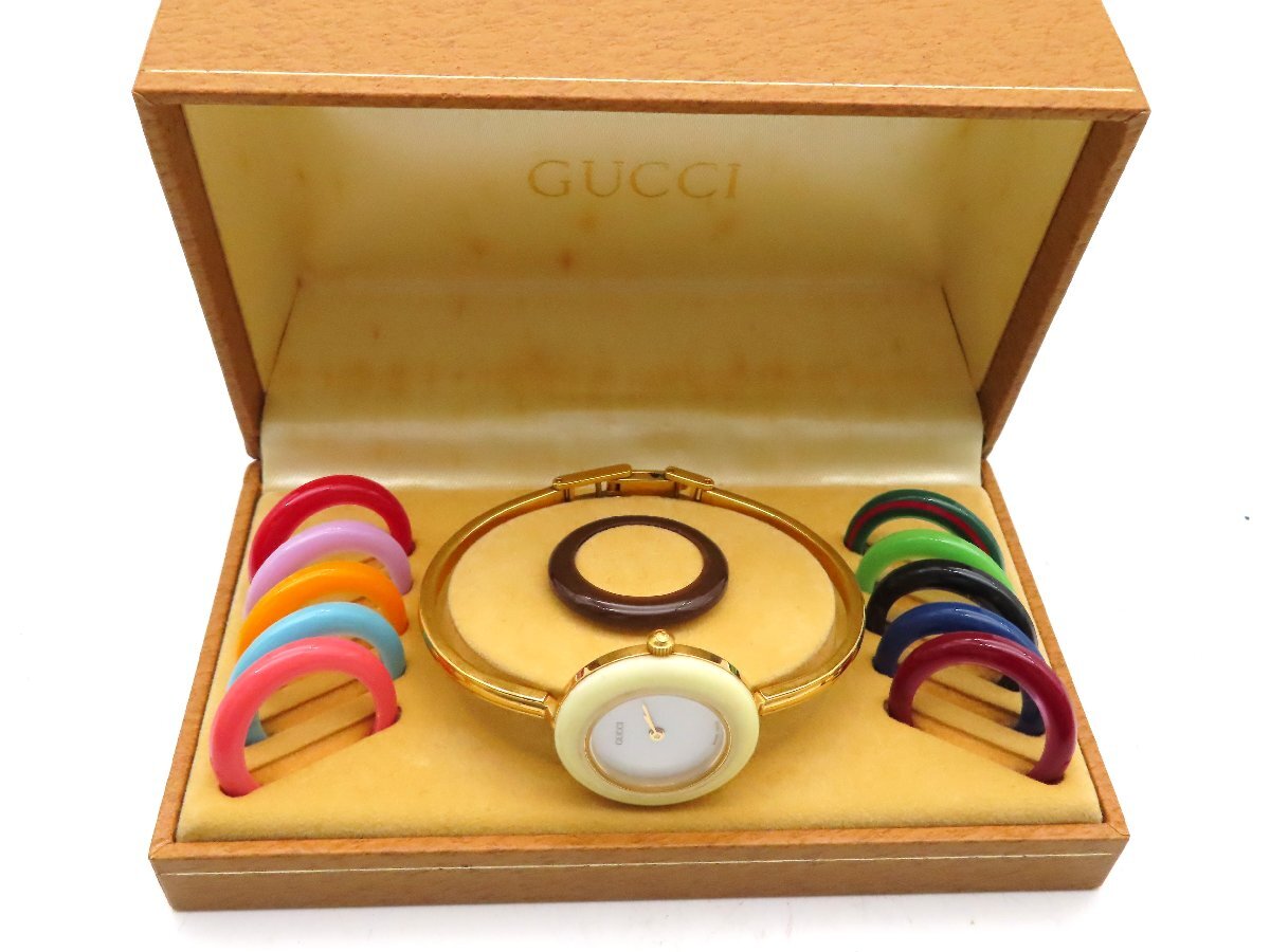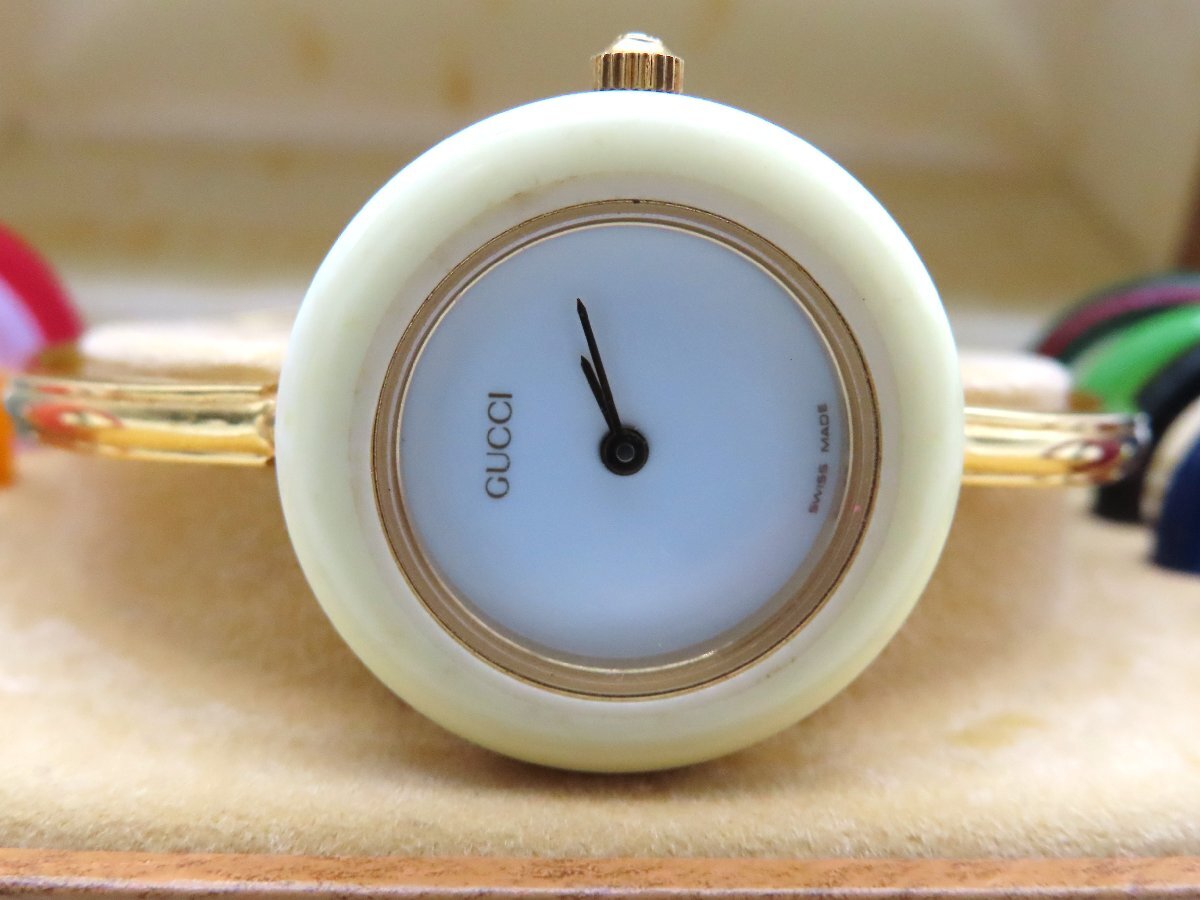 1円 グッチ 11/12.2 チェンジベゼル GP ホワイト文字盤 レディース 稼働 QZ ケース 替ベゼル 28383 LS