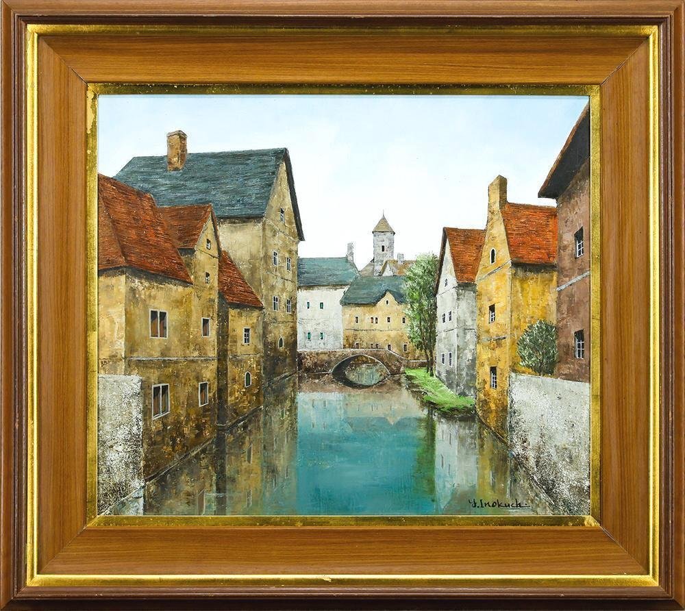 Store 【真作】【WISH】井口由多可「ブルージュ」油彩 10号 ◆ベルギー・石造家屋と橋の運河町   〇欧州風景画家 ル・サロン会員 #25122718