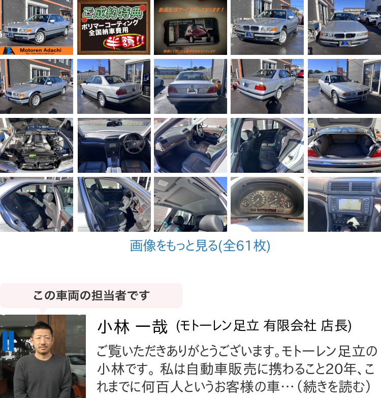 ★★ 落札価格は消費税込みとなります!★★弊社、モトーレン足立(有)は、輸入車販売のプロショップでございます。新、中古車の販売、保険事業、レンタカー事業、法定点検整備や車検、カスタムなどお車の事なら何でもお任せ下さいませ。