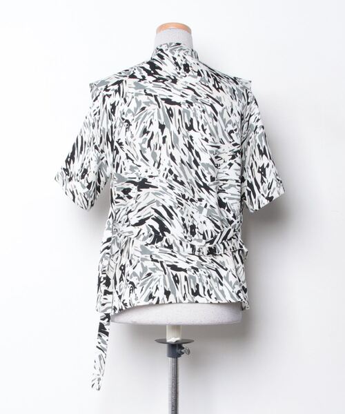 キーワード:ブラウス シャツ レディース サテン ゼブラ柄 七分袖 五分袖 夏 春