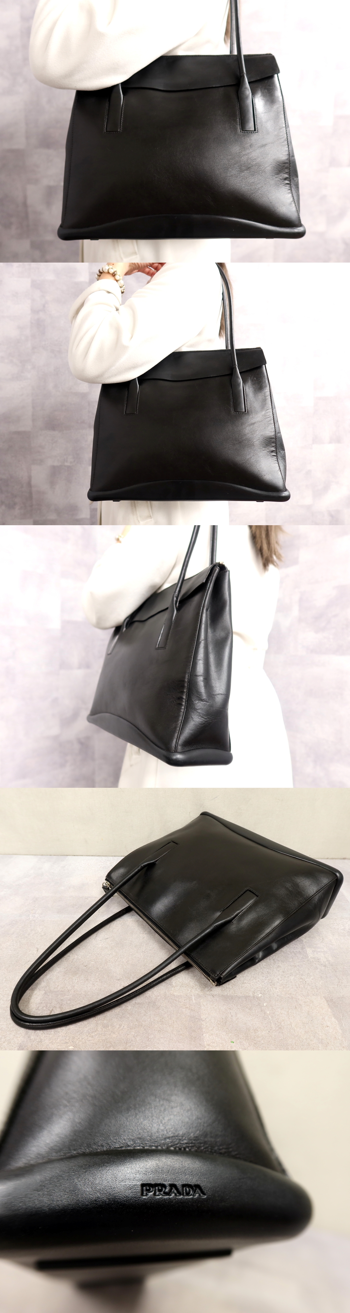 Store ●超美品●PRADA プラダ●カーフ レザー 本革●トート ハンド バッグ●黒●シルバー金具●イタリア製●肩掛け●B5 収納 かばん●Js65298