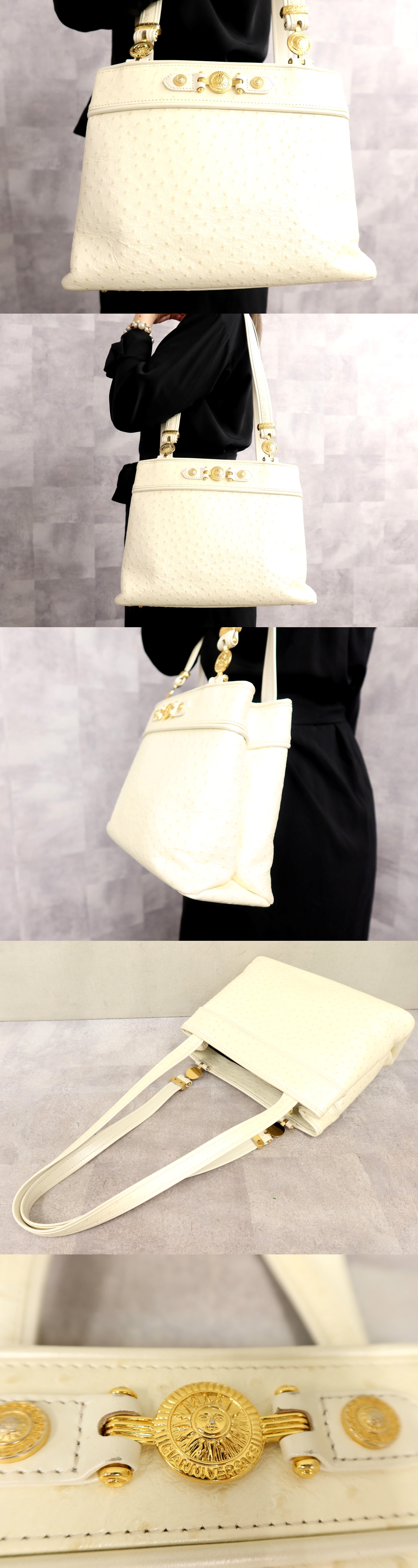 Product name: ●超美品●ジャンニ・ヴェルサーチ●サンバースト●オーストリッチ 型押し カーフ レザー 本革●トート バッグ●アイボリー●B5●Js66440