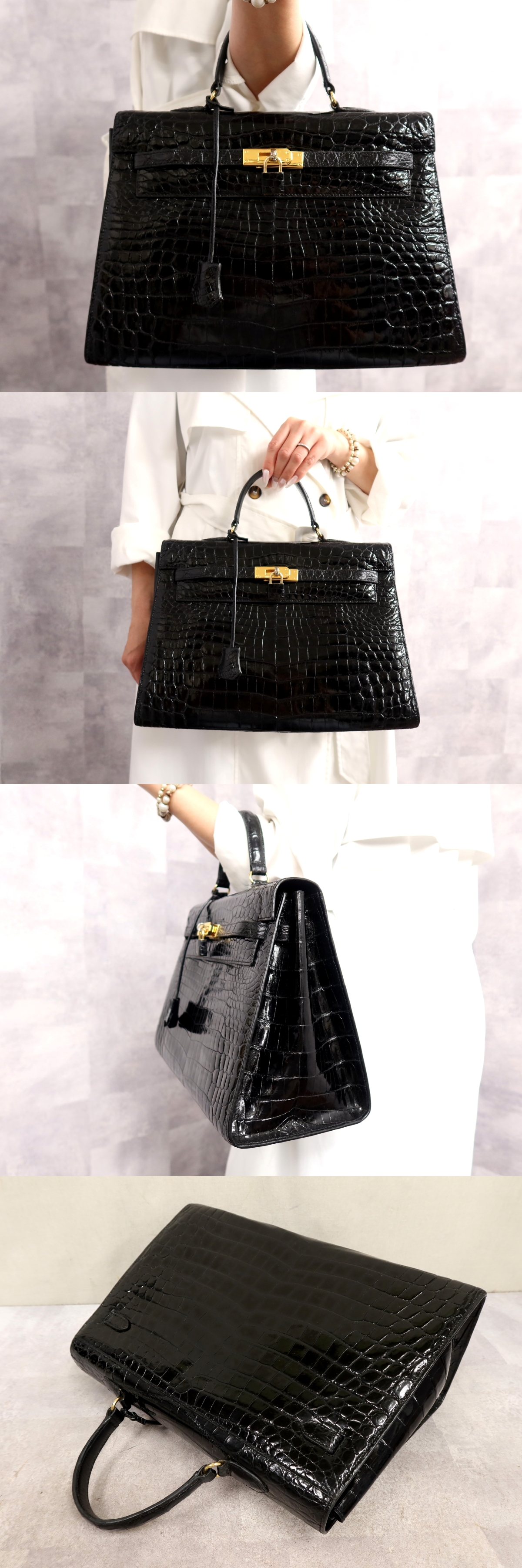 Product name: ●超美品●GENUINE●トップハンドル●クロコダイル 本 ワニ 革●ハンド バッグ●黒●ゴールド金具●腕掛け●かばん●Js66955