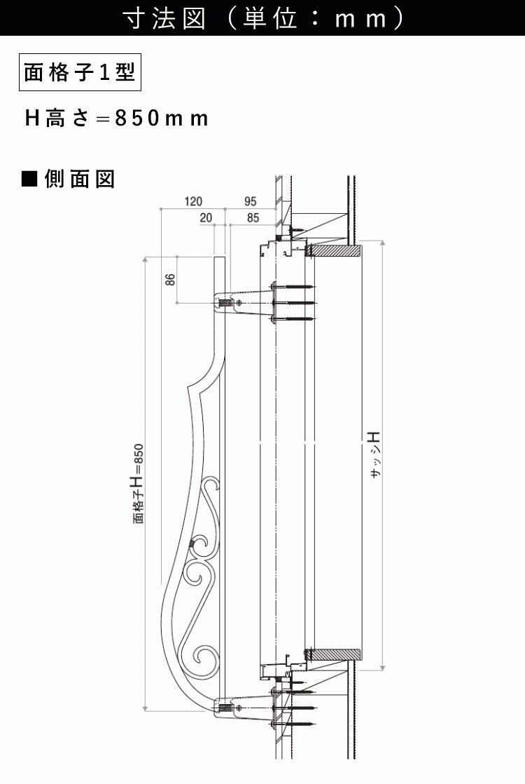 Product name: 面格子 YKK おしゃれ アルミ 防犯対策 シャローネ 1型 985 x 850