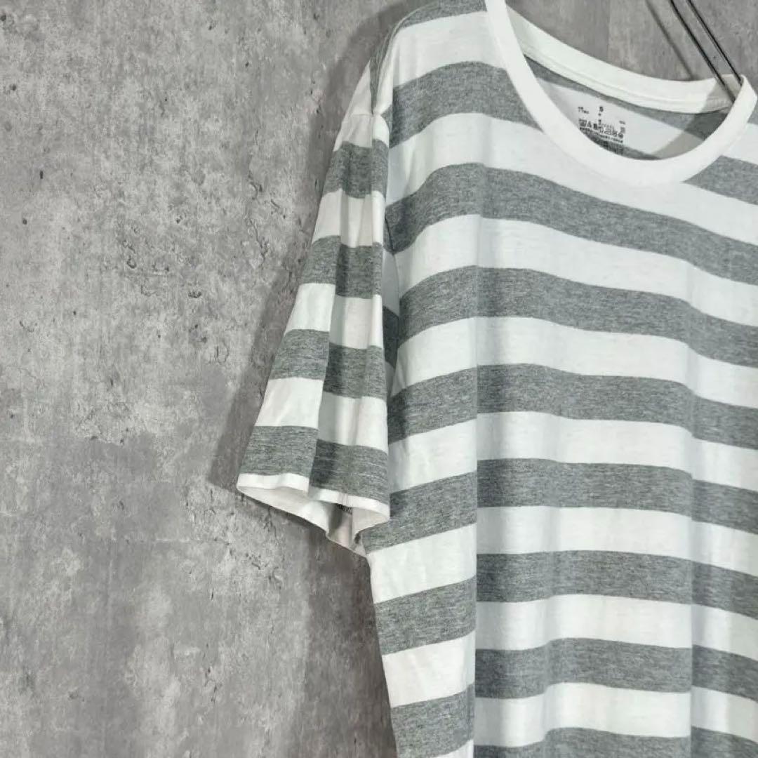 MUJI 無印良品 良品計画 Sサイズ ボーダー 半袖 Tシャツ メンズ コットン メンズ WHITE GRAY ホワイト グレー カットソー 古着