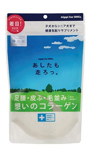 「ニッピ あしたも走ろっ。 足腰想いのコラーゲン (牛由来) 160g 単品」▼4571109956025▼(商品説明)新発見!ドッグフードでは不足しがちだった 本当は大切な栄養素“非必須アミノ酸”の栄養補給 !・コラーゲンは成分の75%以上が非必須アミノ酸です。その不足分を「あしたも走ろっ。」で効果的に補給することができます。・パッケージ重量: 0.17kilograms始まりは一匹の 老犬が立ち上がったことから 「寝たきりの老犬がニッピのヒト用コラーゲンを食べて立ち上がった。」 その知らせを聞いた私たちは一匹でも多くのワンちゃんに幸せになってほしいとの願いから商品開発をスタートさせました。 あれから5年。ついに犬用健康補助食品「あしたも走ろっ。」が完成致しました。 詳しい商品情報は、メーカーのHPで。 ニッピダイレクトURL http://nippi-direct.com/