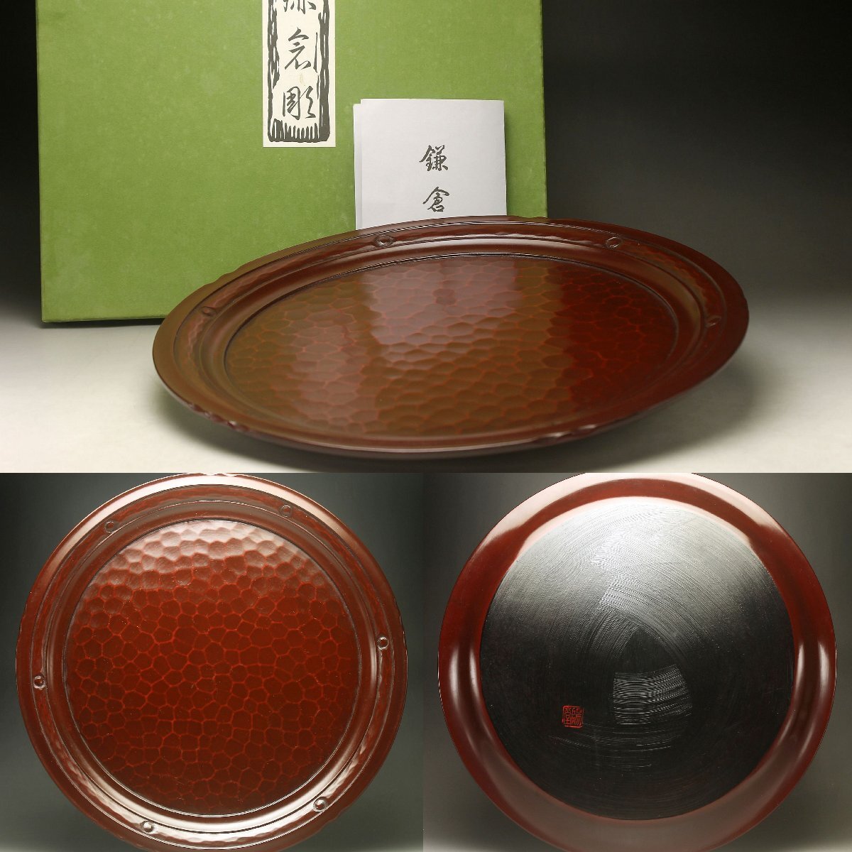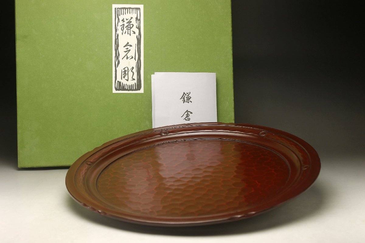 Product name: 【余韻】 鎌倉彫 陽堂十四世 大石雅樹永輔作 古瓦盆★尺一 栞 化粧箱 無傷美品<同梱可>