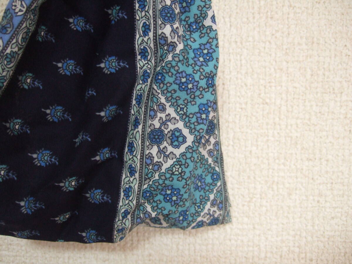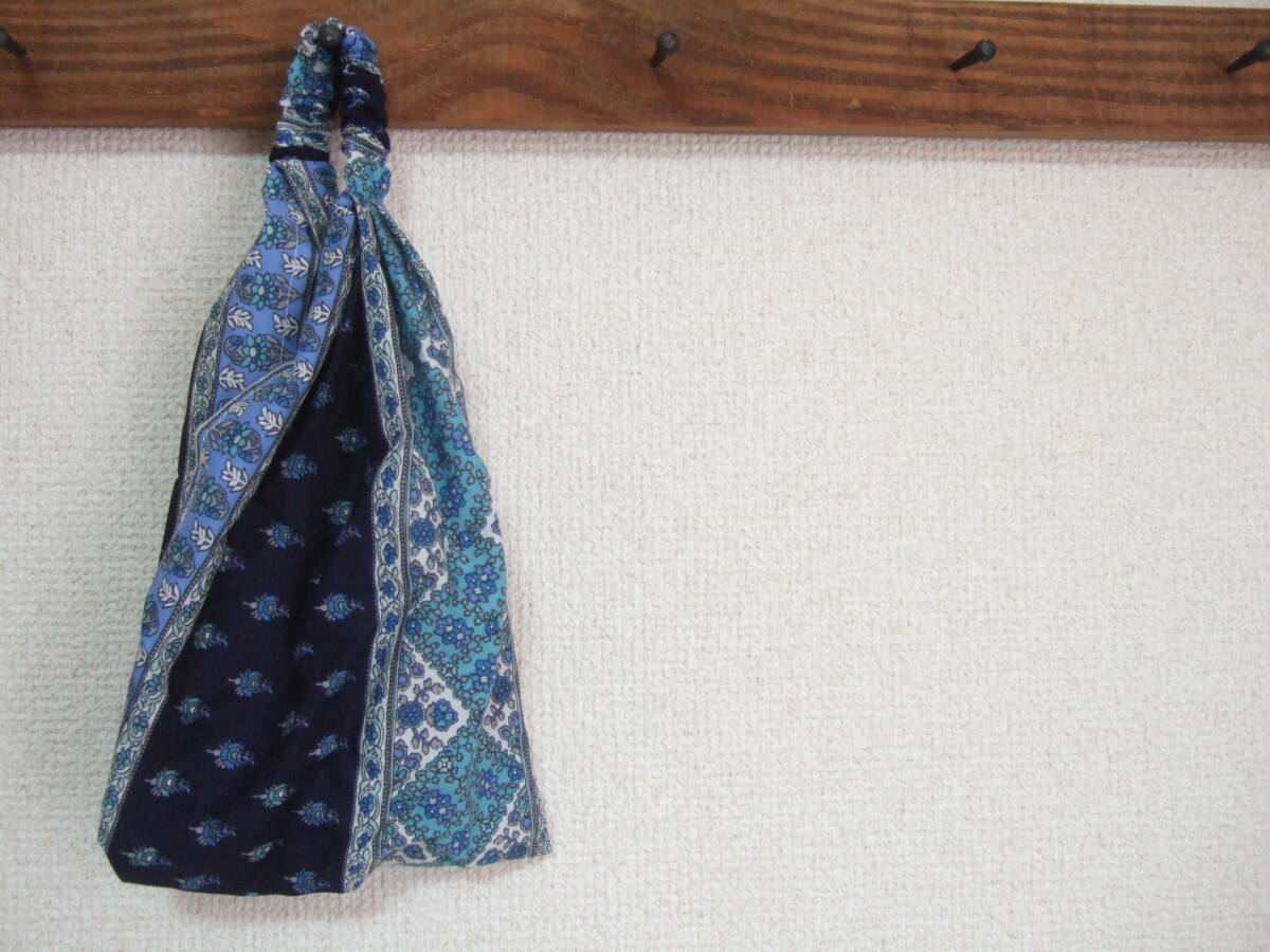 ★即決★ハンドメイド エスニックパッチワーク柄 ブルー系 コットンのゆるターバン**ヘアバンド 家事のスイッチターバンにも