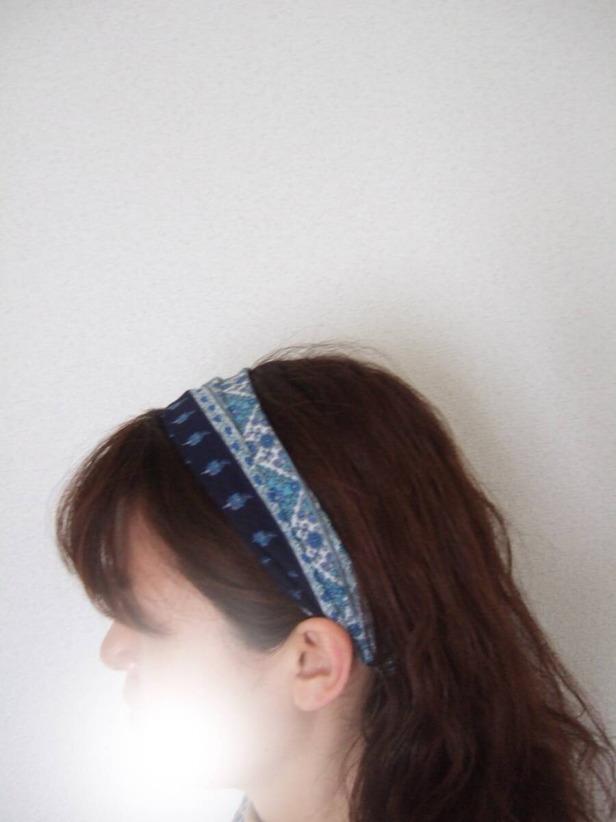 Product name: ★即決★ハンドメイド エスニックパッチワーク柄 ブルー系 コットンのゆるターバン**ヘアバンド 家事のスイッチターバンにも