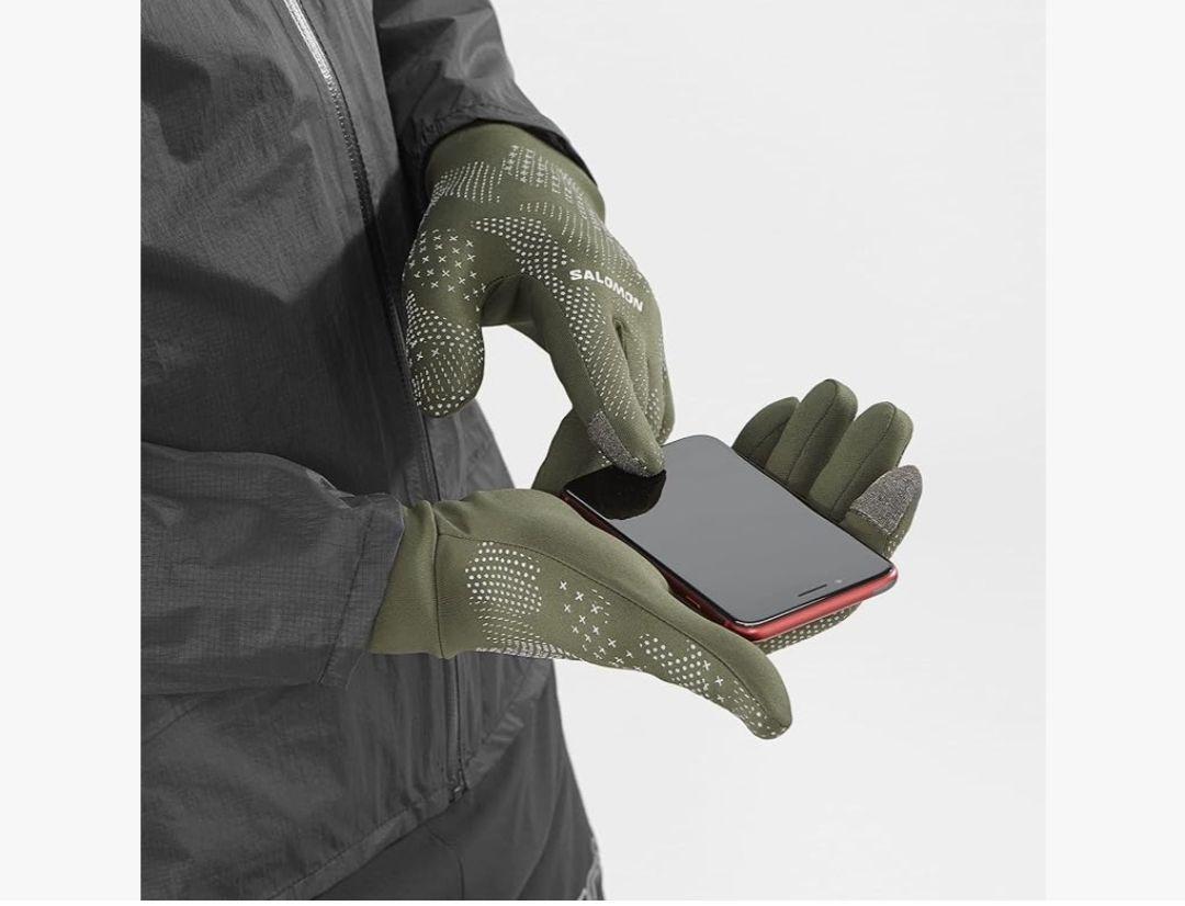 タッチスクリーン対応ファブリックを使用し、グローブを着けたままでもスマートフォンを操作できるので着脱の煩わしさがなく◎