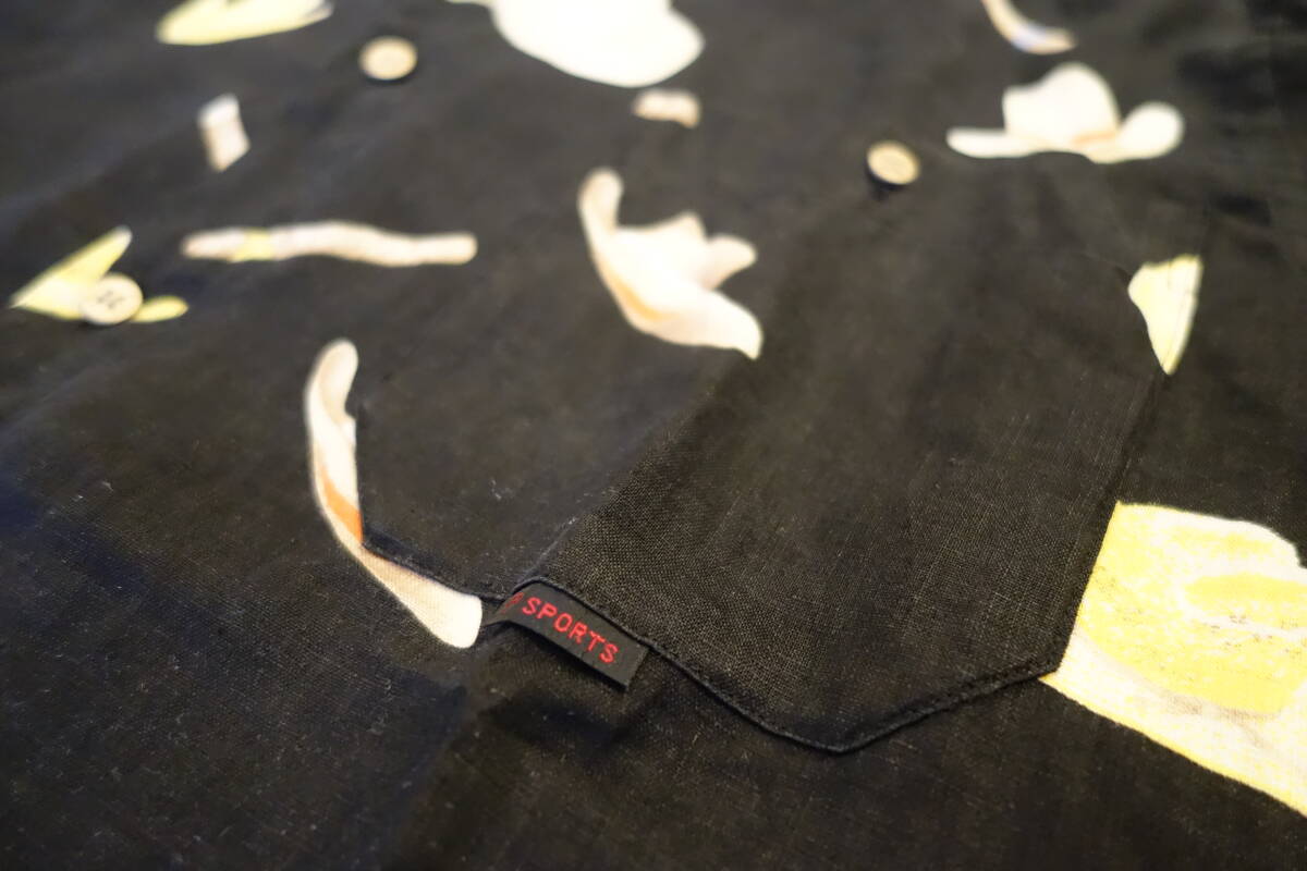 黒系の地色に帽子や葉巻があしらわれた麻のシャツでほつれや破れはなくまだまだ使えると思います。使用感のある中古である事を了承の上、ご検討ください。