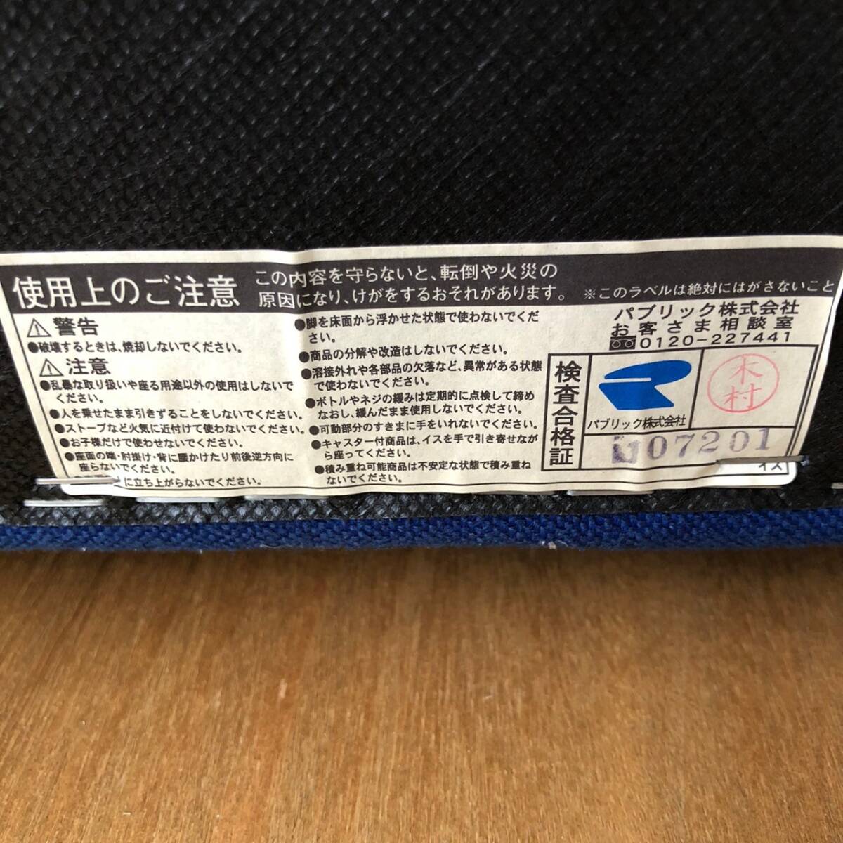 脚はダークブラウンで張地は青色です。
