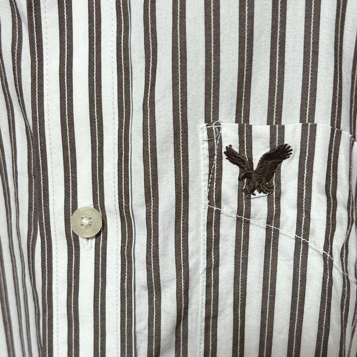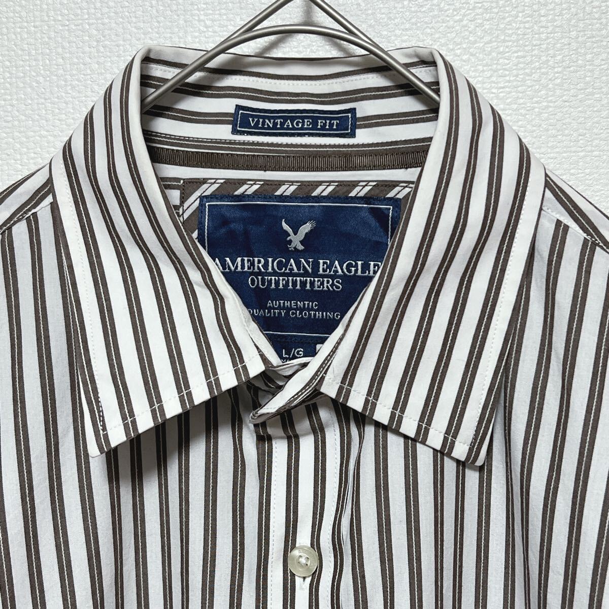 American Eagle Outfitters アメリカンイーグル ワイドスプレッドカラー 長袖シャツ ストライ ヴィンテージ フィット ロゴ刺繍 サイズL