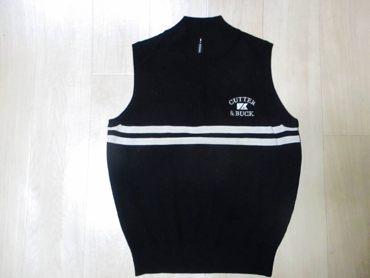 USED・カッター&バック・ハーフジップニットベスト・黒色・サイズM・着丈60,5㎝・身幅脇下49㎝・毛100%・汚れなどは有りませんが、USED品にご理解頂ける方の入札お願い致します。ゆうパケット230円で発送させて頂きます。