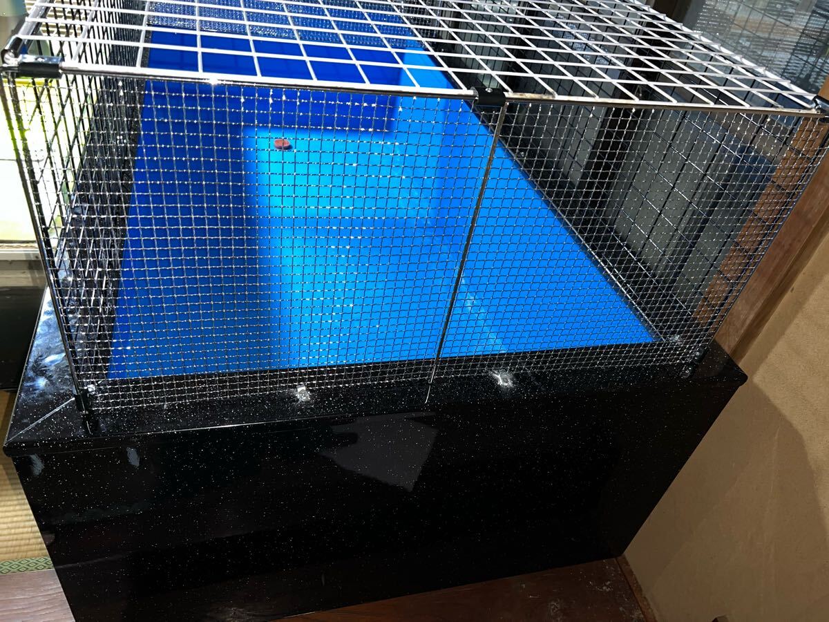 ワニの飼育に使ってました。括弧内の高さは金網を外した時の数値です。排水口付きなので魚だけでなくミズガメ等の飼育にも使えると思います。神奈川まで引き取りに来れる方のみ入札お願いします。重いので3〜4人でお越し下さい。