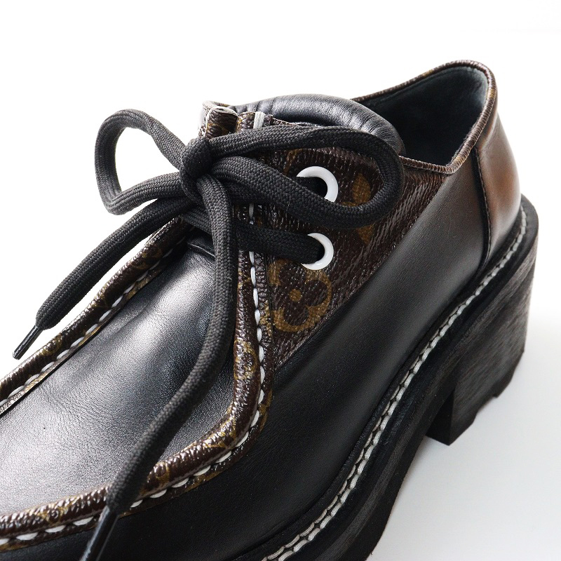 良品 ルイヴィトン LOUIS VUITTON LVボブール モノグラム ラインダービーブーツ 36.5(23.5cm)ブラック//シューズ【2400014303605】