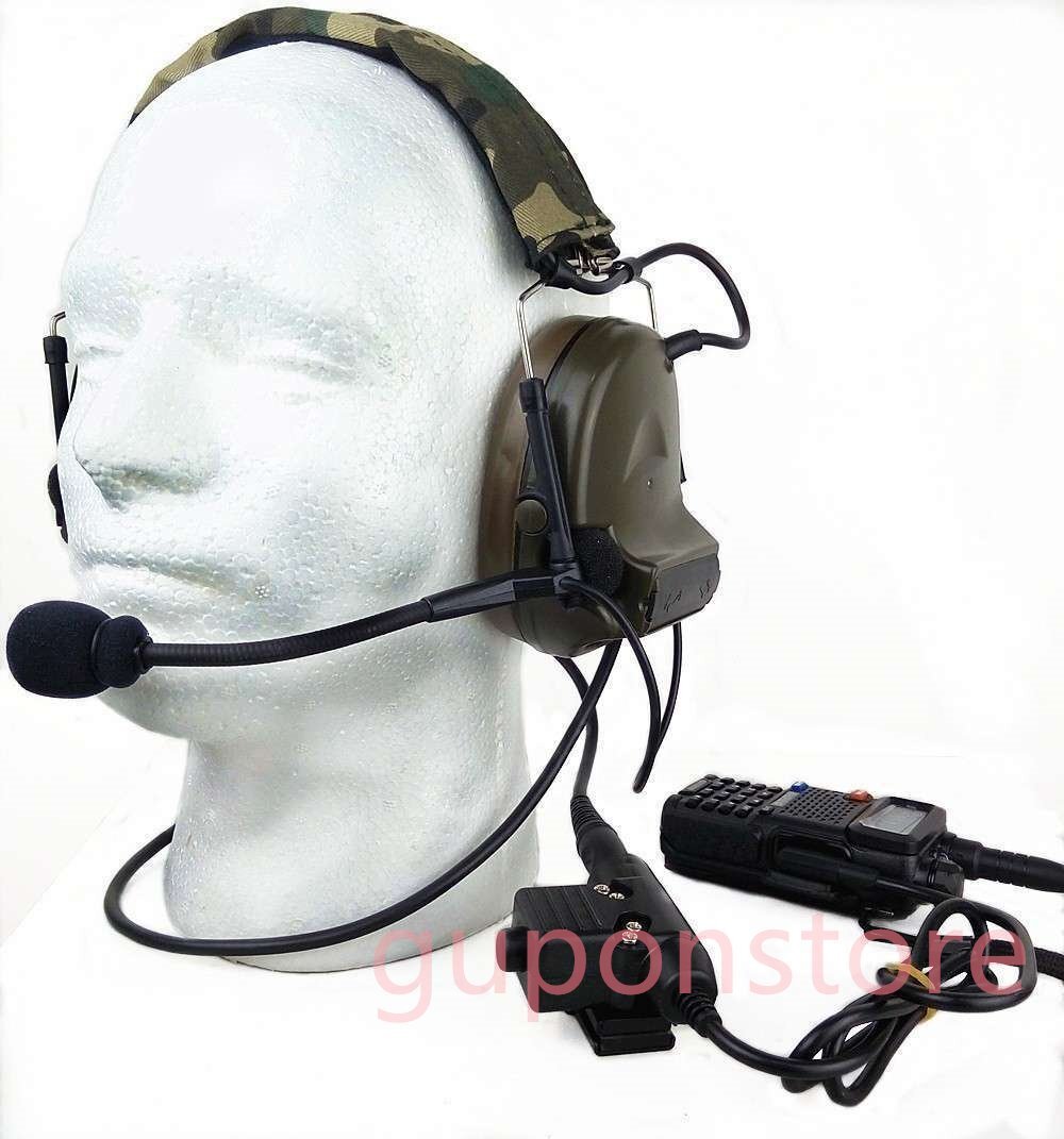 z戦術ヘッドセットヘッドフォン付u94 pttケンウッド2ウェイピンcomtac iiノイズリダクションヘッドドセットトランセラーデュールpttオードブラブ