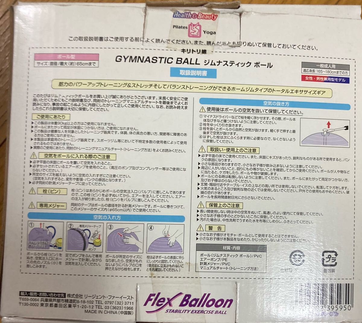 ジムナスティックボール 男女兼用 65㎝ マニュアルは付いてません。ヨガやシェイプアップにどうぞ。