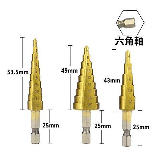 ◎素材:HSS鋼(ハイスピードスチール)チタンコーティングの素材で製造したステップドリルです。