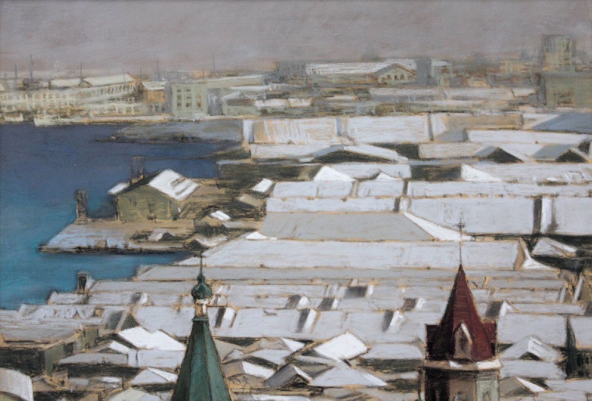 本間武男 「冬の函館」 パステル画 絵画 - 北海道画廊