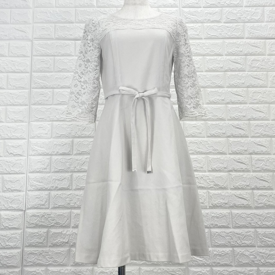 【A3606】LAISSE PASSE レッセパッセ ワンピース レディース レース袖ワンピース 七分袖 ホワイト ウエストリボン 上品 春夏 Sサイズ