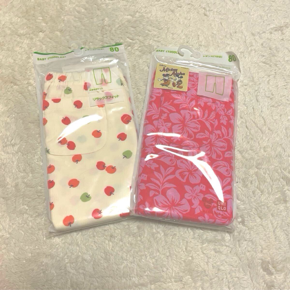 送料無料★新品★ユニクロ★ミッキーアロハ&りんご柄★レギンスパンツ7分丈セット★80★女の子幼稚園保育園ベビー子供ストレッチ
