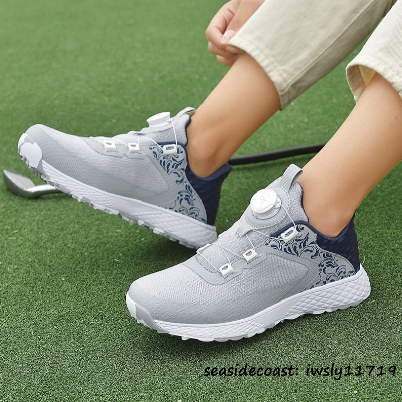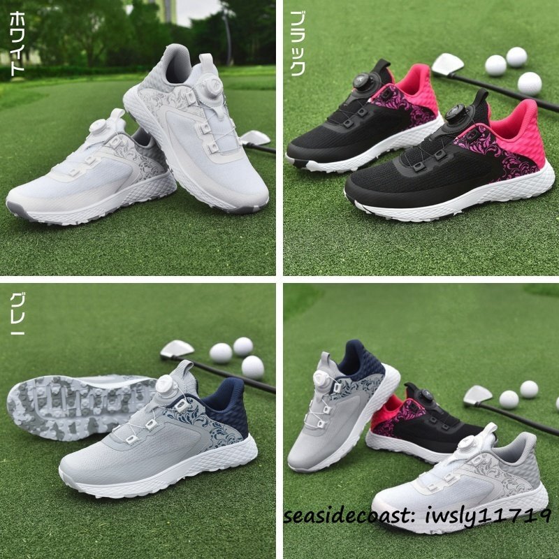 新品◆ゴルフシューズ メンズ ダイヤル式 スニーカー 運動靴 スポーツシューズ 通気性 フィット感 防滑 撥水 弾力性 快適 グレー 24.0cm