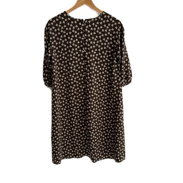 Product name: アンタイトル UNTITLED サイズXXS XS - ダークブラウン×アイボリー レディース Vネック/七分袖/ひざ丈/花柄 美品 ワンピース