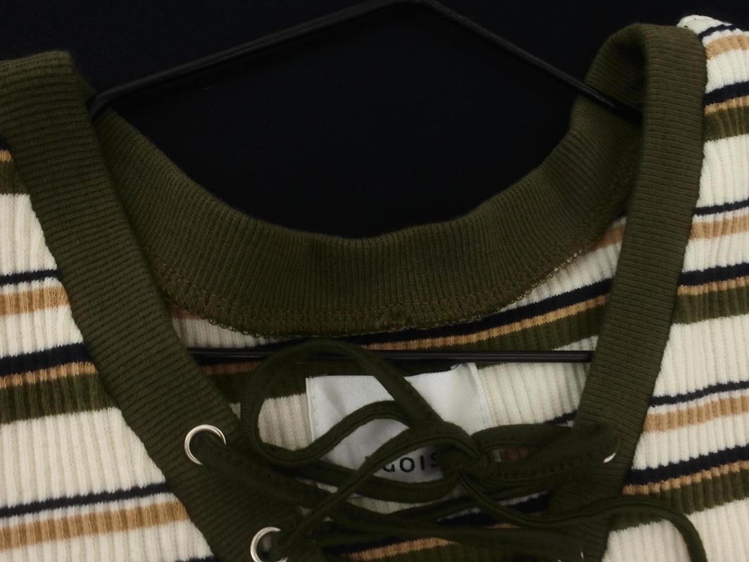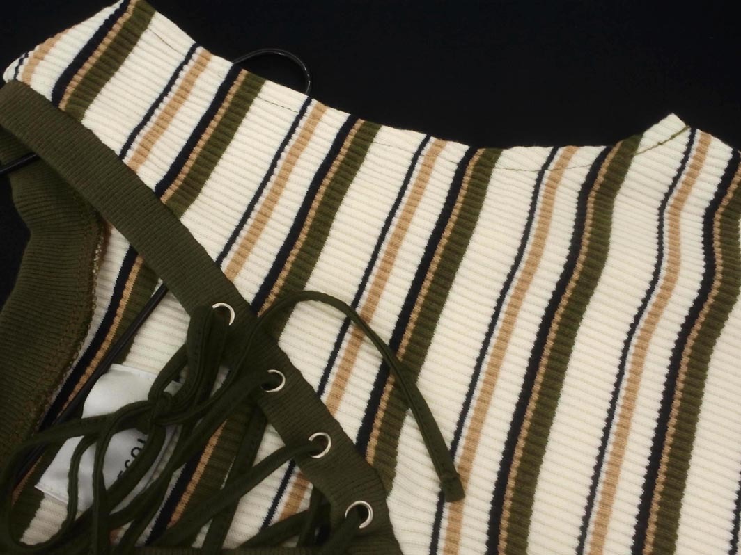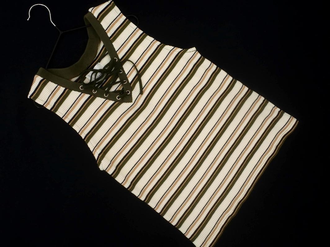 Product name: EGOIST エゴイスト レースアップ ボーダー ノースリーブ カットソー 白xカーキ ■◆ ☆ fec3 レディース