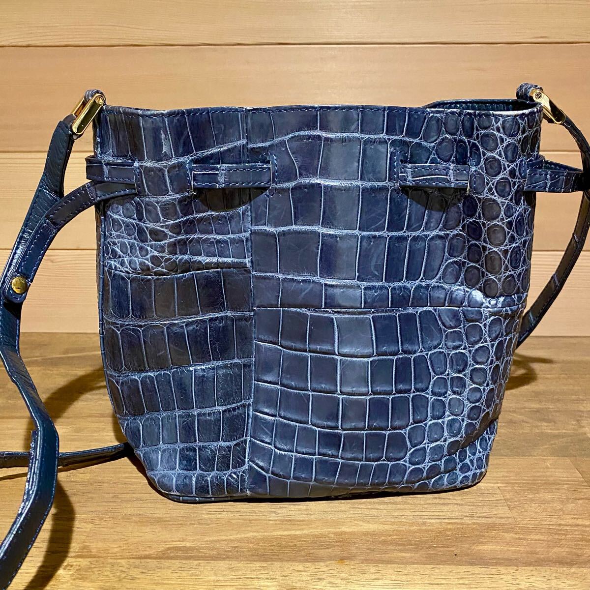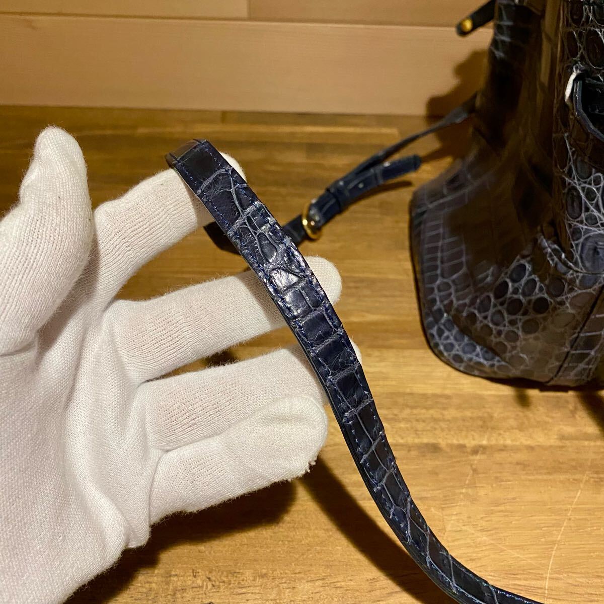 即決 mademoiselle non non リアル クロコダイル ショルダーバック ネイビー センター取り マドモアゼル ノンノン レディース 巾着