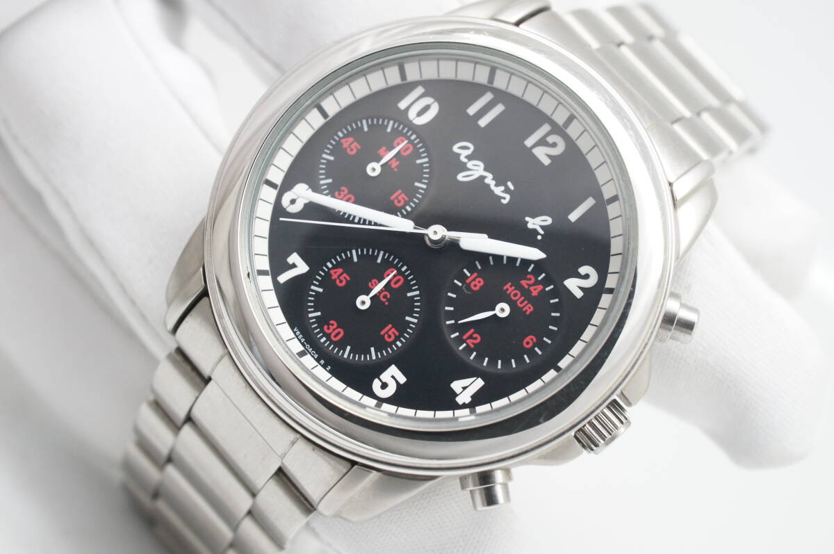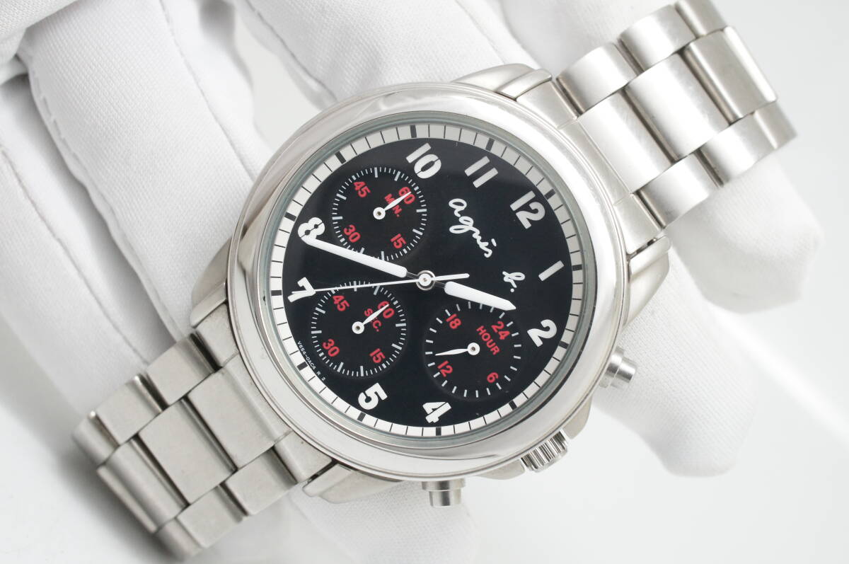 Product name: E98●作動良好 agnes b. アニエスベー クロノグラフ V654-0AA0 黒文字盤 メンズボーイズ腕時計 シルバー お洒落 クォーツ