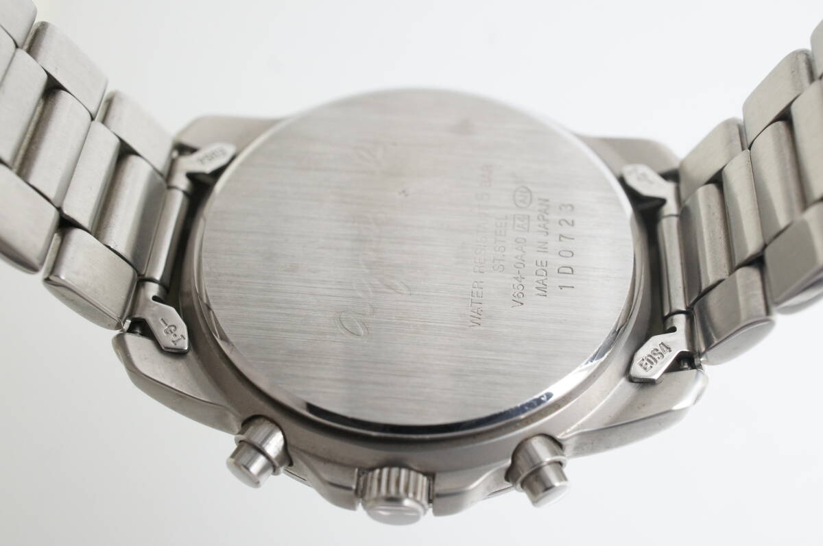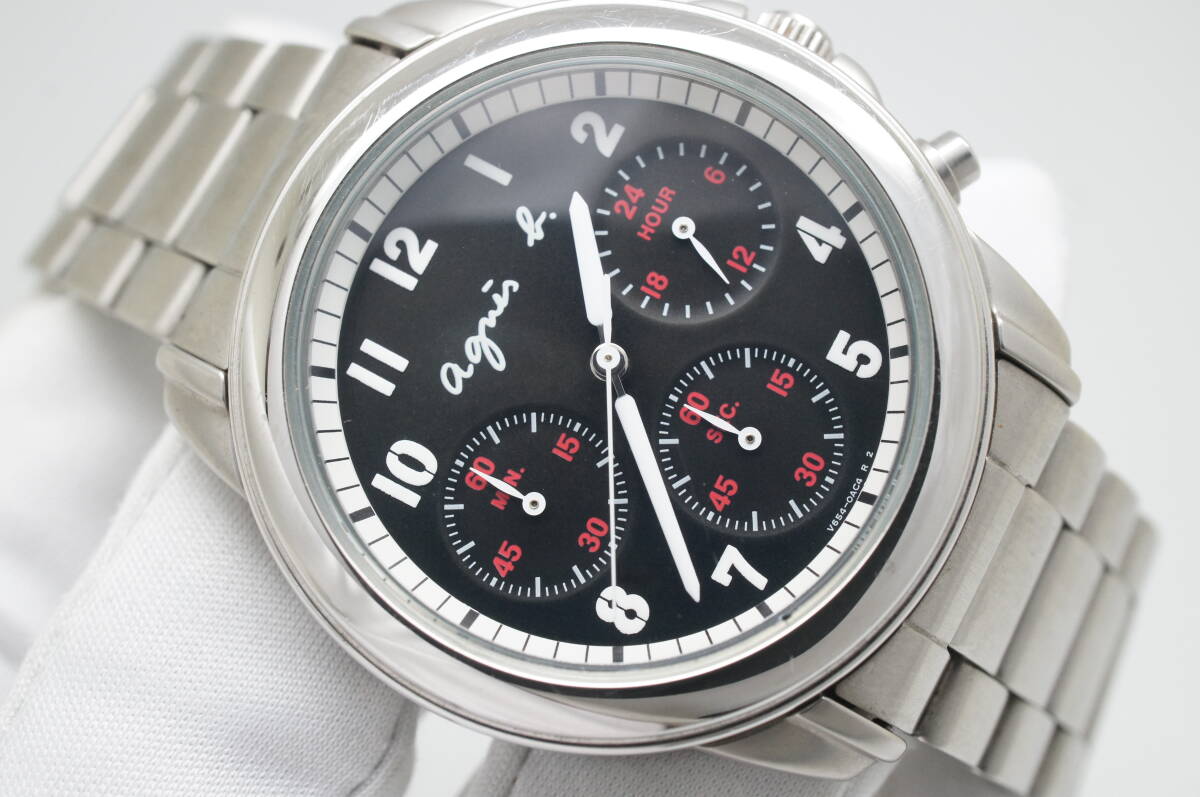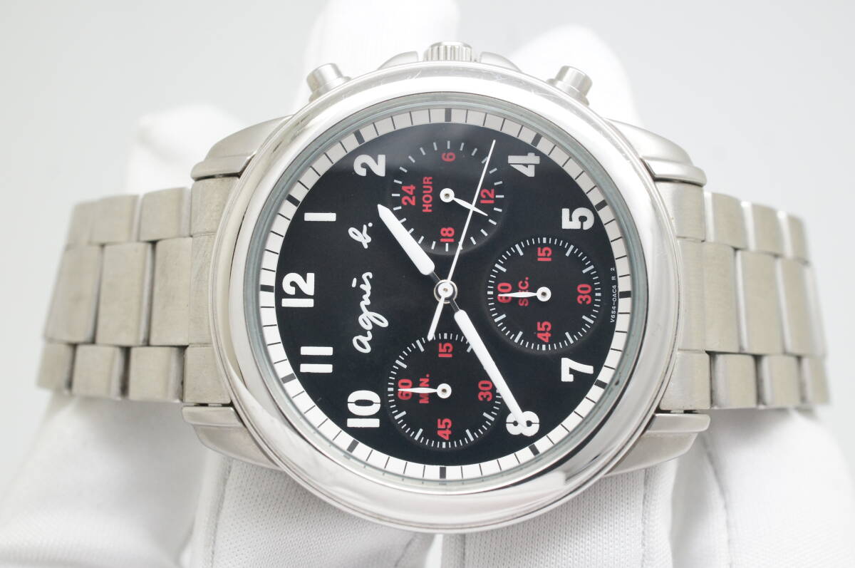 E98●作動良好 agnes b. アニエスベー クロノグラフ V654-0AA0 黒文字盤 メンズボーイズ腕時計 シルバー お洒落 クォーツ