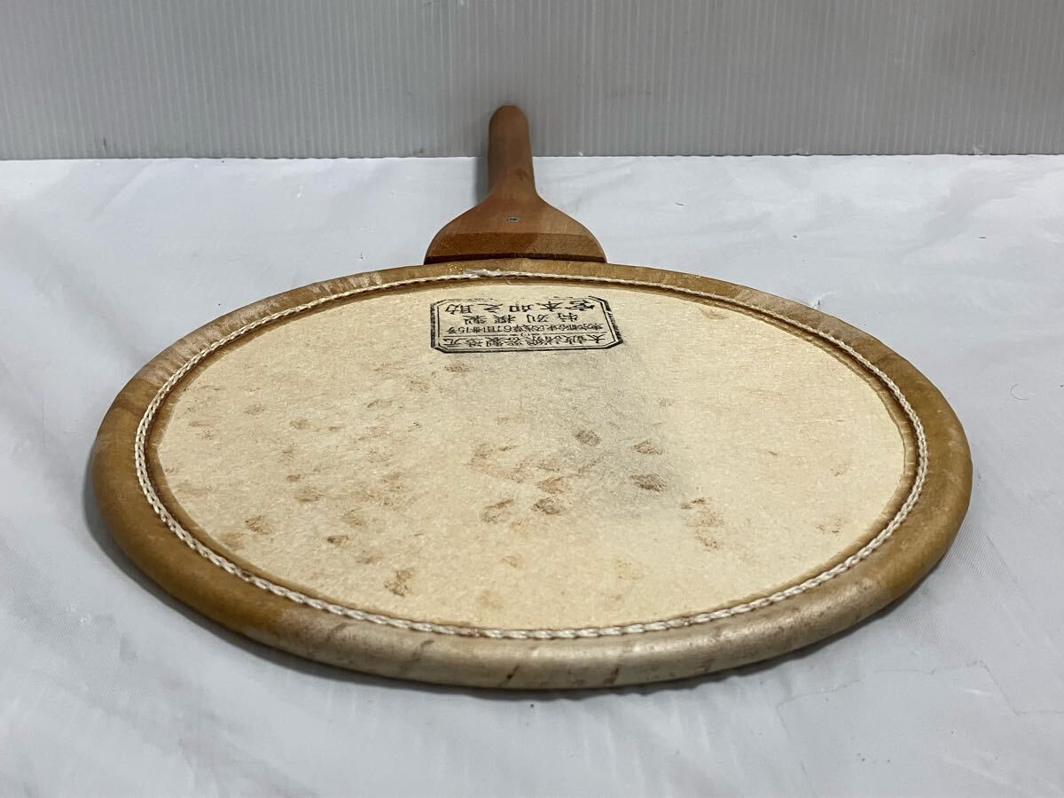 ▲L010▲ 伝統工芸 仏具 和楽器 宮本卯之助商店 特別撰製 高級 団扇太鼓/うちわ太鼓  和太鼓 和楽器*本革 無地 木製持手(焼印)