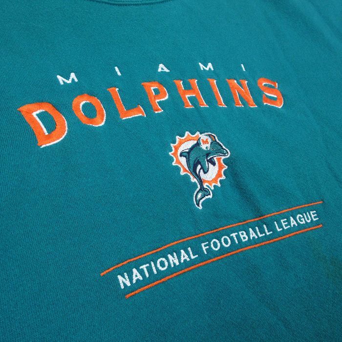 【商品名】 XL★古着 長袖 スウェット メンズ NFL マイアミドルフィンズ 刺繍 大きいサイズ クルーネック 青緑 アメフト スーパーボウル
