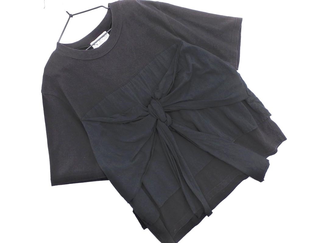 RNA アールエヌエー 素材切替 リボン カットソー sizeM/黒 ■◆ ☆ ffb3 レディース