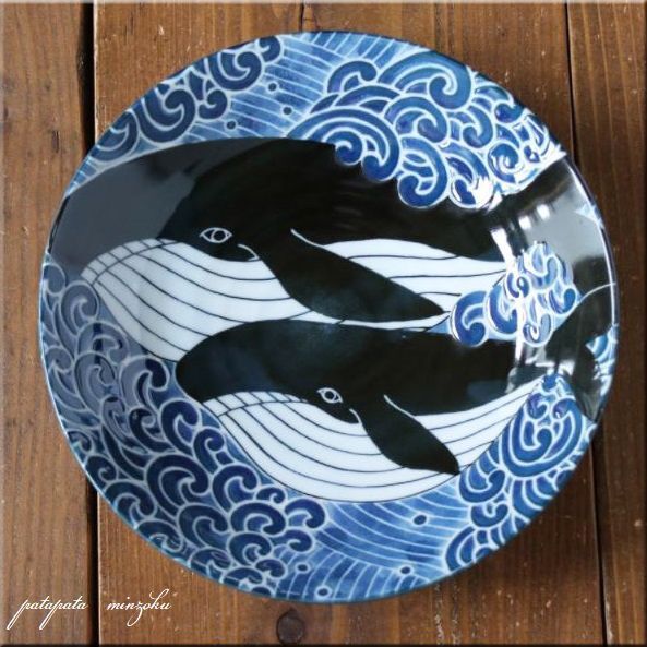 Product name: 美濃焼 白波くじら 7寸深皿 プレート くじら 21.7cm 皿 磁器 陶器 パタミン キッチン 皿 店舗什器 くじら 和食器